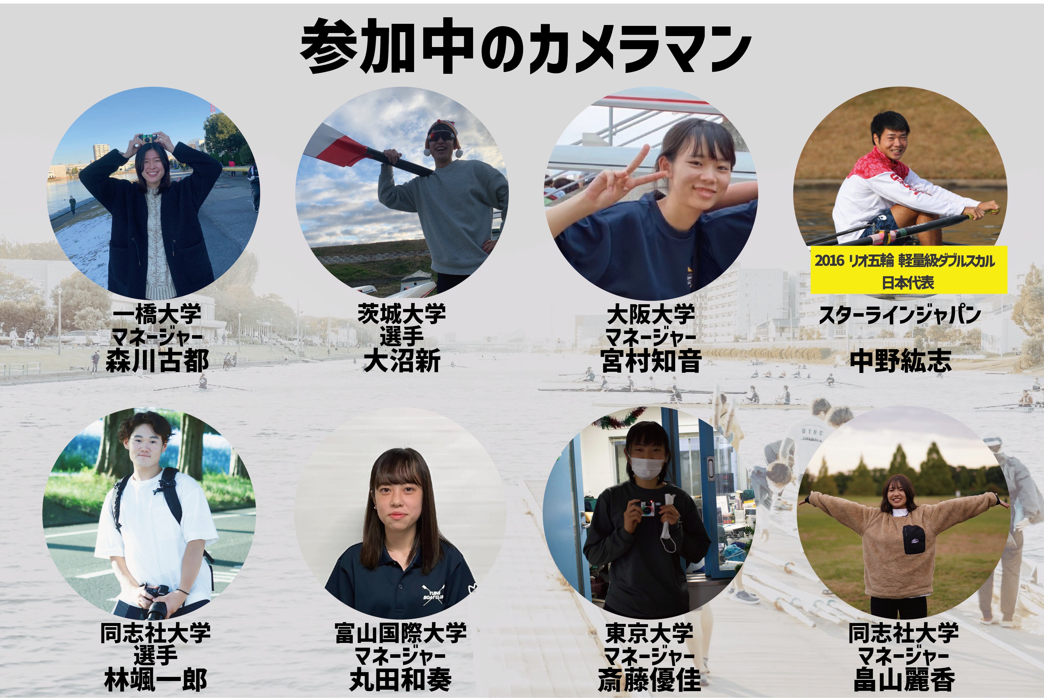 そこで、現役のボート部員・ボート選手にカメラを渡し、撮影してもらうことで写真を集めようと企画しました。