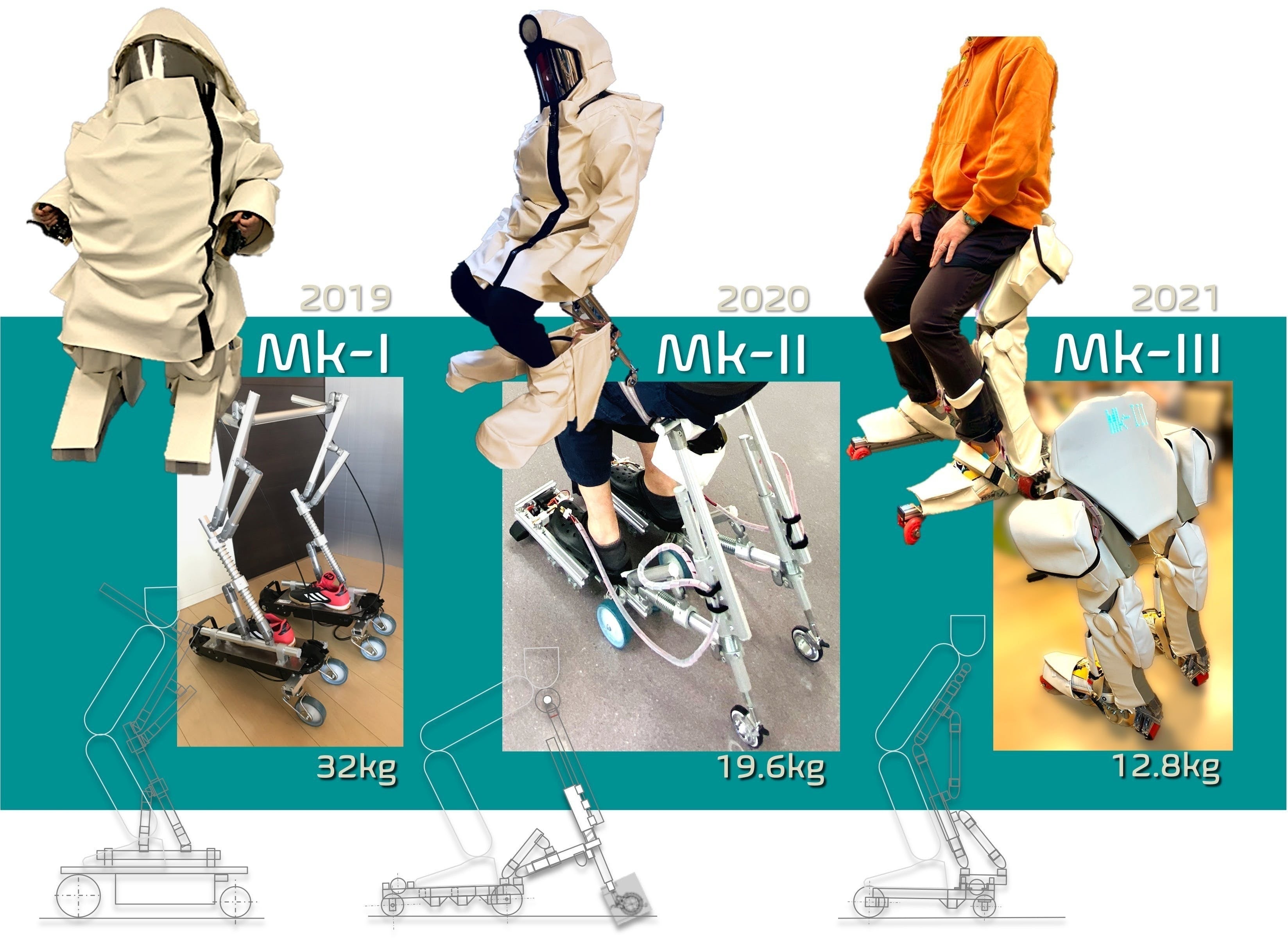 次期モデル「MOBILE WEAR Mk-IV(仮名)」開発の主眼は操作性の向上、具体的には軽量化にあると考えています。軽量・コンパクト化を図ることで、より一層「衣服のような」着るモビリティ の実現に近づけることができます。