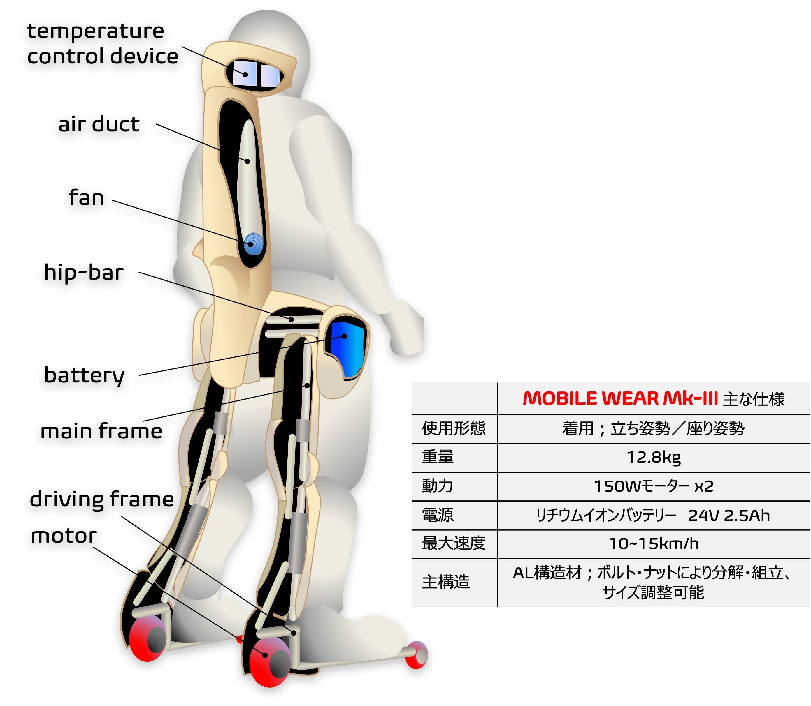 MOBILE WEARは10km/h程度の速度で移動することができますが、