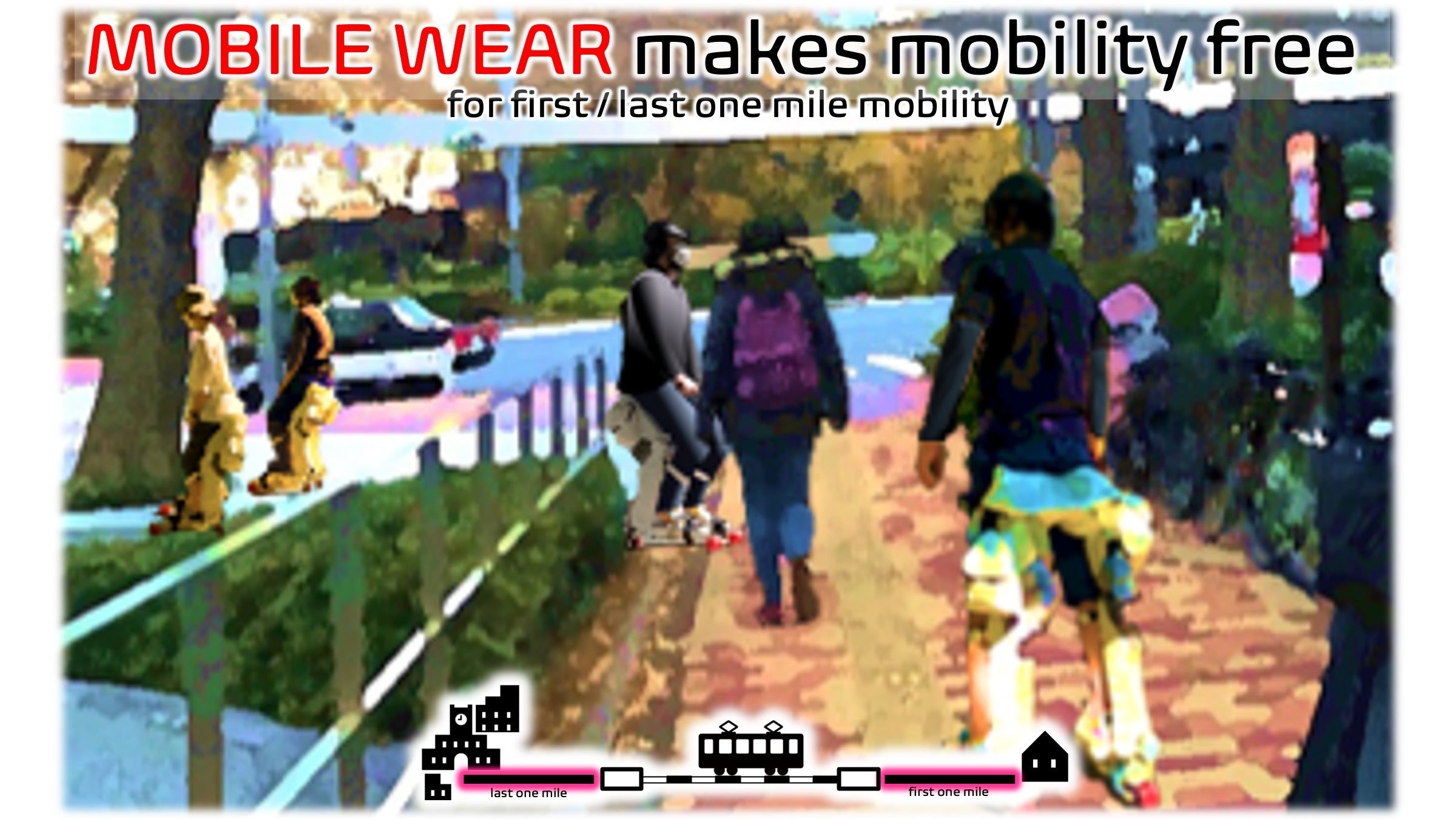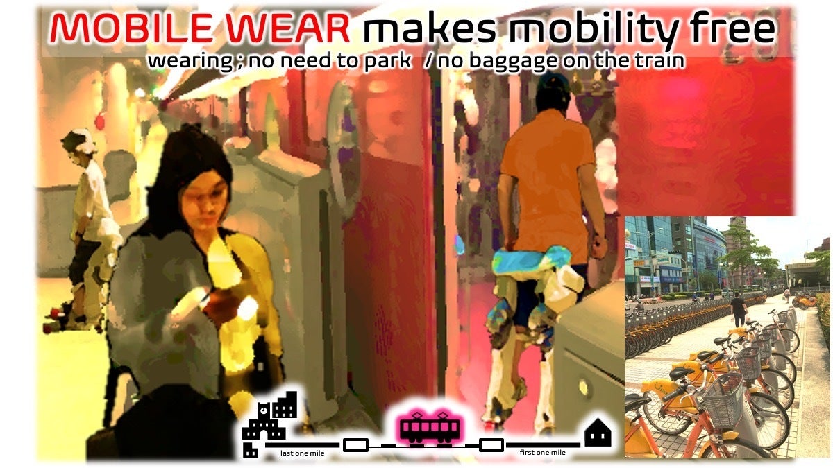 MOBILE WEARは身につけて使うので、駐車場や駐輪場は要らず、煩わしい手荷物にすることなく電車に乗り込んで、家から目的地までのシームレスな移動が可能になります。また駐車場そのものが不要になるのでそのスペースが有効に活用できます。