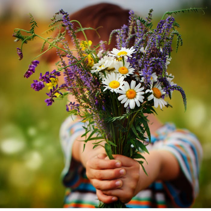 子どもが草原で花を摘み束ねるように、自然のありのままの生き生きとした、
