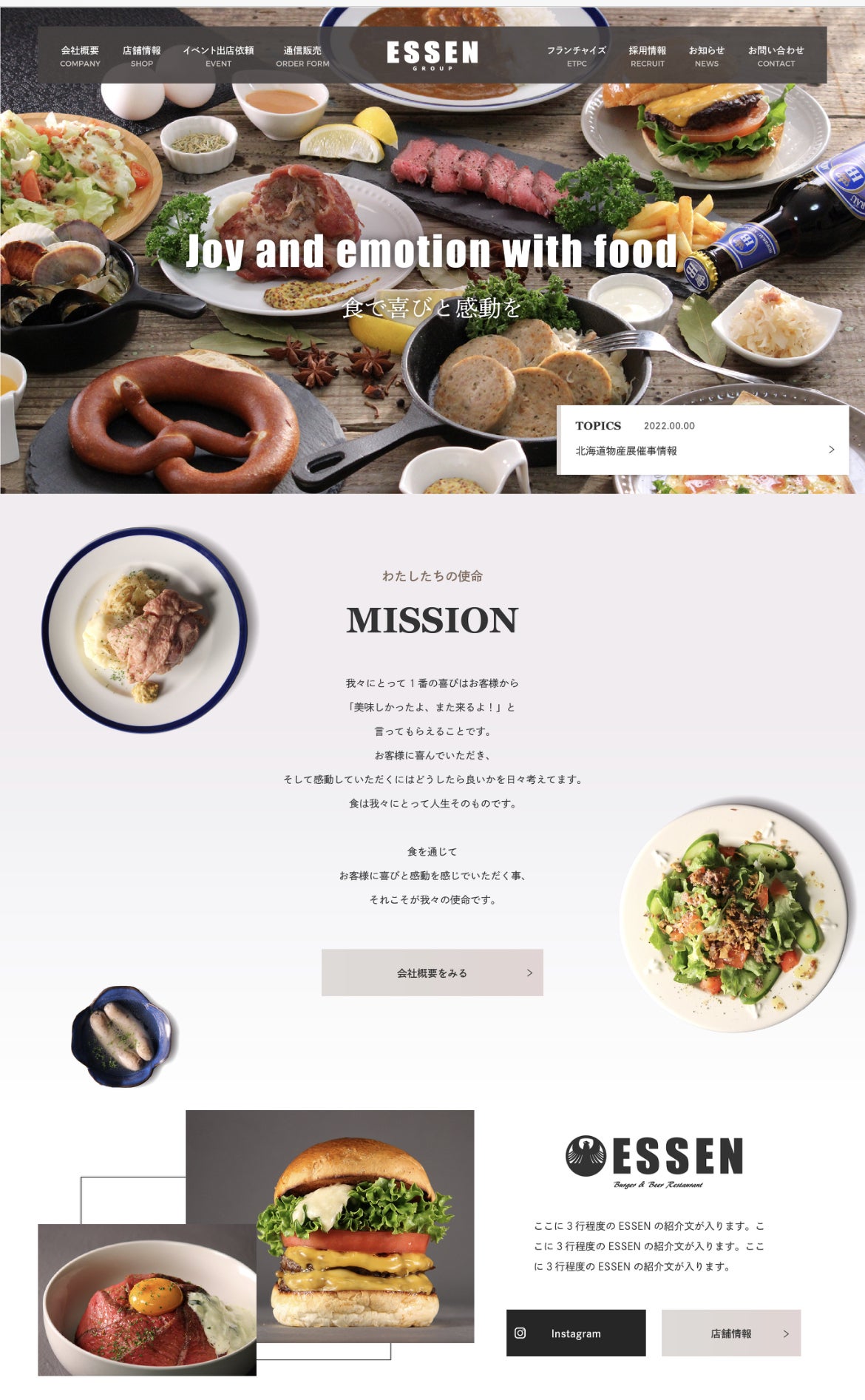 私たちエッセングループは札幌市で飲食店を経営している会社になります。ESSEN=ドイツ語で「食」GROUP=「集団」であり我々エッセングループは食で喜びと感動を提供する食のプロ集団です。
