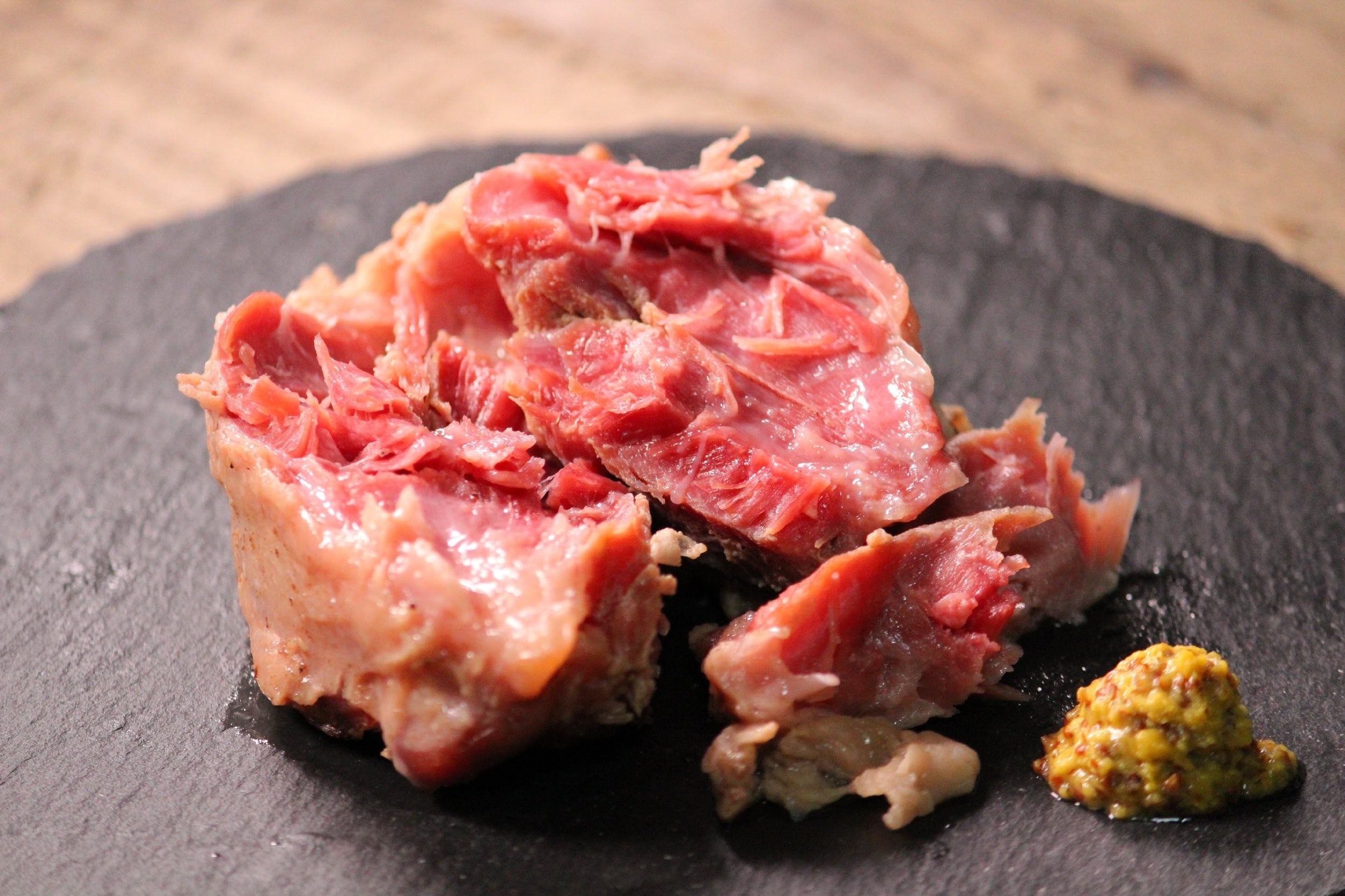 北海道産豚スネ肉を数種類の香味野菜と香辛料でじっくり塩ベースで煮込んだドイツ料理の一つ。