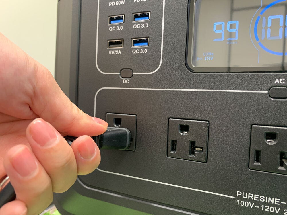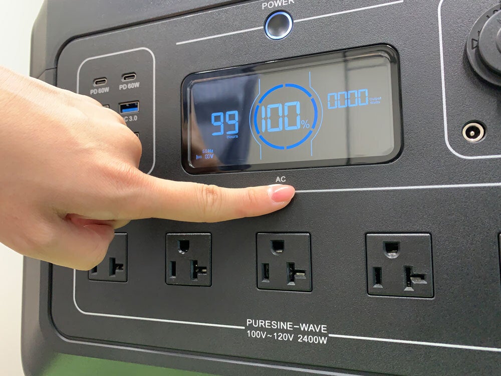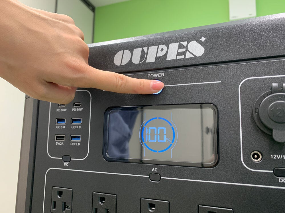 以下、OUPES2400のAC出力のやり方を含めて写真を掲載していきます。ご参考にしてください。