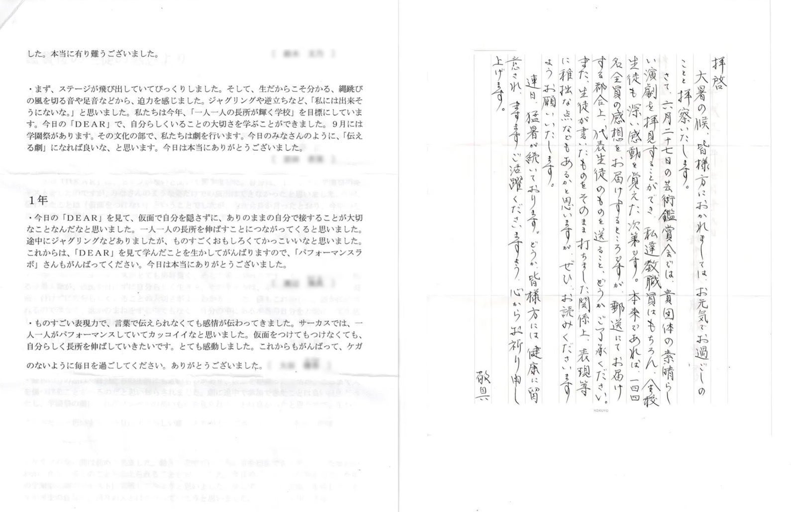 (全国各地からいただいたお手紙・感想・メッセージ)