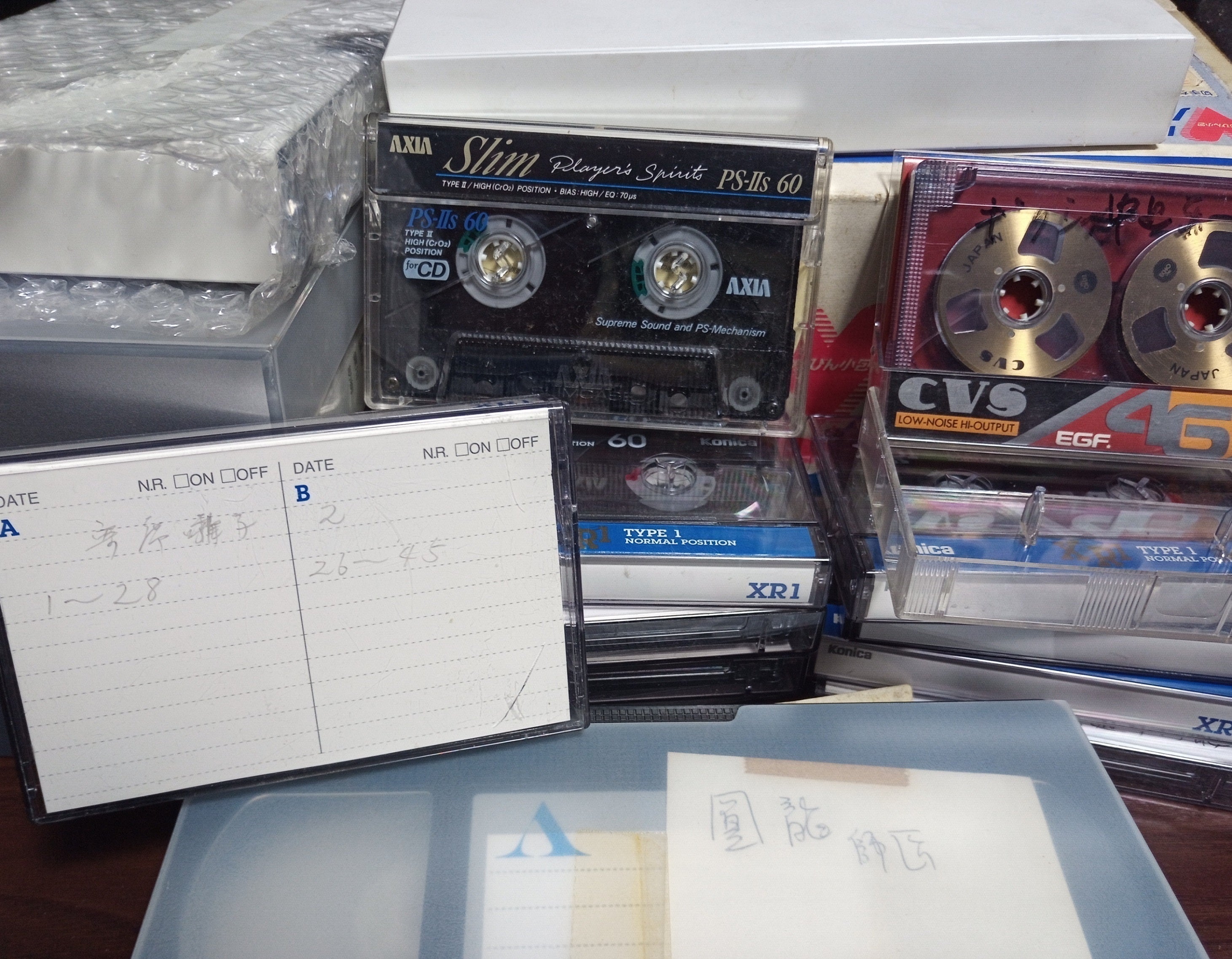 独演会で記録用に残しておいたのであろう録音テープを一部譲って頂きました。演題も何も記載されていない録音テープなどが多く、圓龍師匠の声が入っているのかどうか分からない状態です。テープもかなり古そうな物もありましたが、しっかり保存されてこなかった為に汚れがひどいだけかもしれません。もしかしたら圓生師の音声が残っているのではないかと仰る方もいますが、正直わからない状態です。圓生師に稽古をつけてもらっている時の音声など出てきたらいいのですが、それは調べてみるほかありません。放置しておけば劣化するだけですので、出来るだけ早くデジタル化するつもりです。