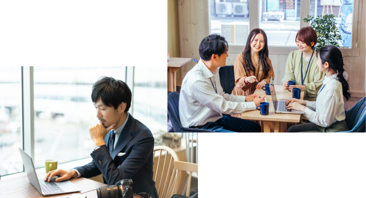 長居したくなる雰囲気が良く仕事のできる「カフェ」や「おしゃれな本屋」さんのような落ち着けるカジュアルな空間デザイン。