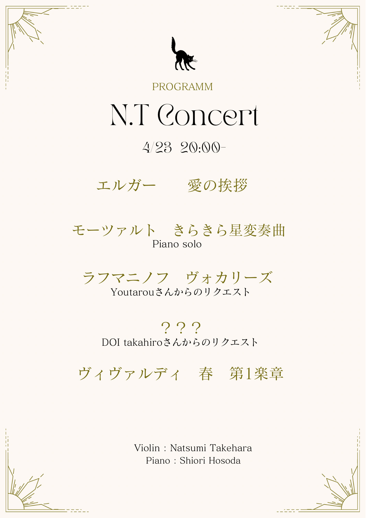 第2回オンラインコンサートまで、あと3日となりました…!!ここで、プログラムをお知らせいたします!