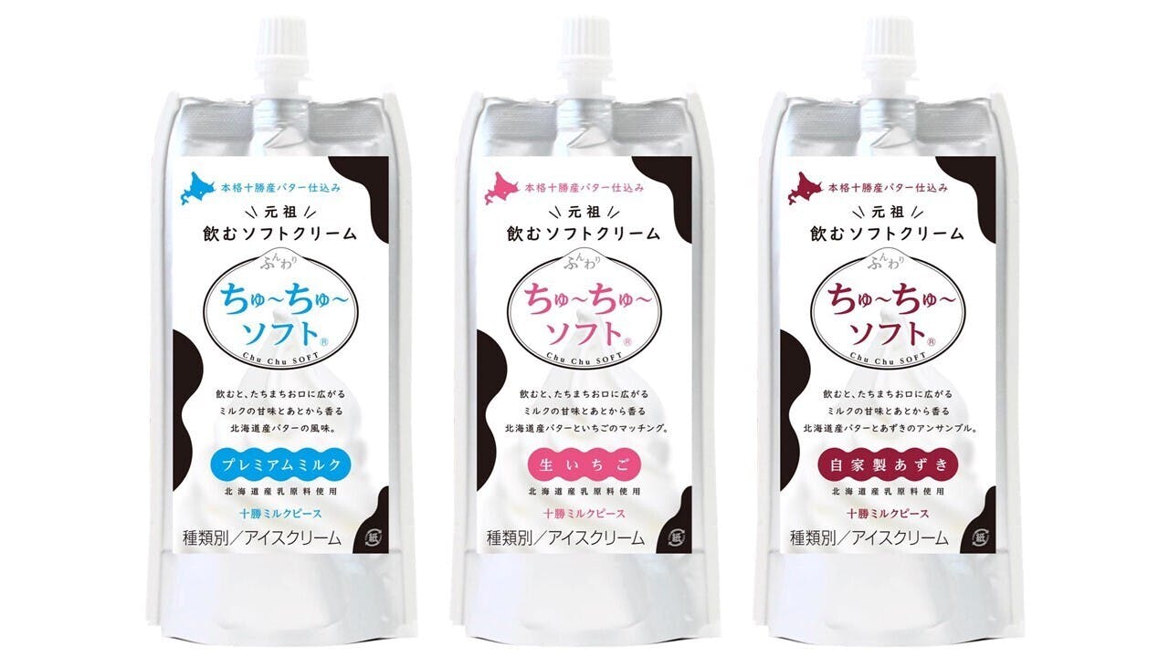 季節に関係なく、好きな場所で好きなときに食べたくなる「十勝のソフトクリーム」は作れないか。それが今から3~4年前に考案した新感覚のソフトクリームドリンク『ちゅ~ちゅ~ソフト』です。