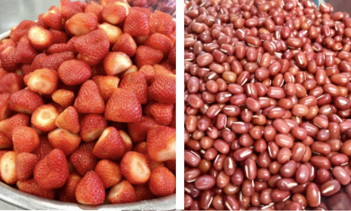 十勝産いちごと「畑のルビー」と呼ばれる十勝産あずき