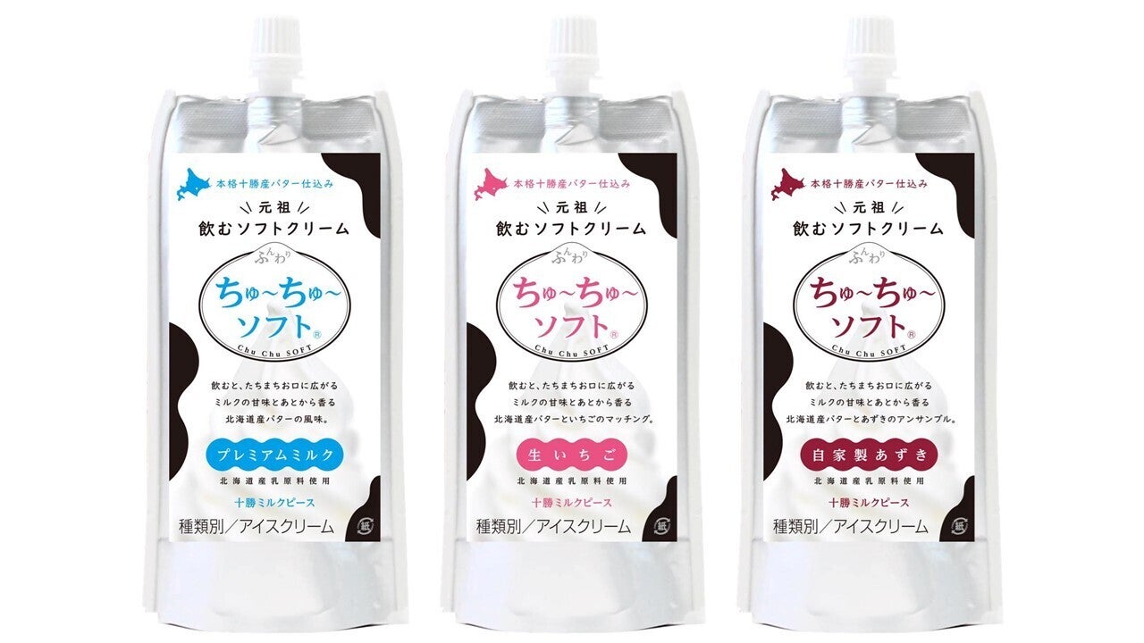 『ちゅ~ちゅ~ソフト』は北海道・十勝の牧場から搾りたての生乳を使った“飲むソフトクリーム”です。