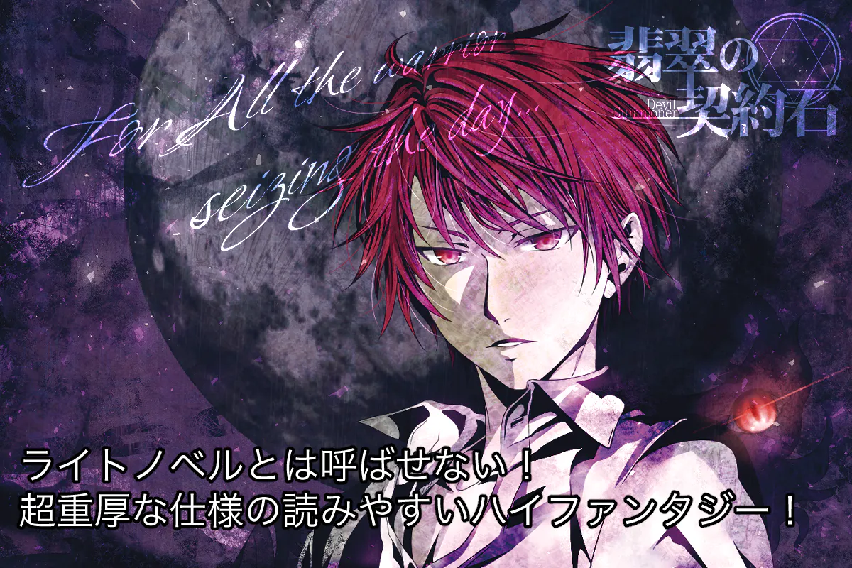 悪魔に育てられた悪魔召喚士、その身に宿る未知の能力「翡翠の魔法陣」をめぐって人間が、悪魔が様々なトラブルを巻き起こします。「生きたい」と願う誰かのために決して諦めず足掻き続ける彼らの戦いは流行りの転生ものではありませんが、その分新鮮みがあると思っております。仲間との絆や信頼といったものがお好きな方にも楽しんでいただけると思います。