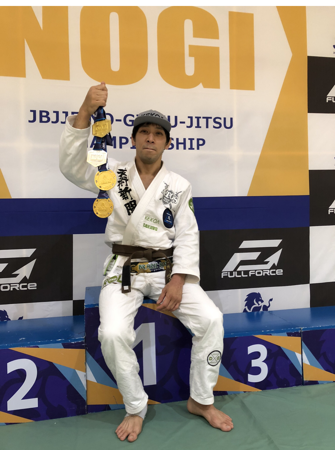 現在では柔術のみならず道着を着ない組技(グラップリング)にも積極的にチャレンジし昨年JBJJF(全日本ブラジリアン柔術連盟)主催の全日本ノーギと言う大会において41歳と言う年齢ながら2位になることが出来ました。