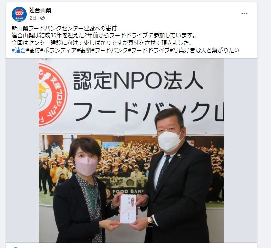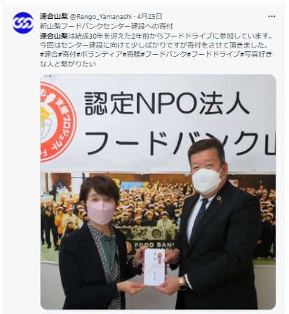 また、連合山梨様のSNSでは、フードバンクセンター建設への応援もしていただきました。