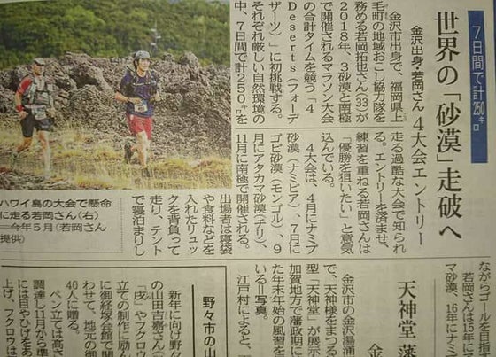 ご報告が遅れておりましたが、12/31付けの北國新聞にて砂漠走破という記事で紹介していただきました。