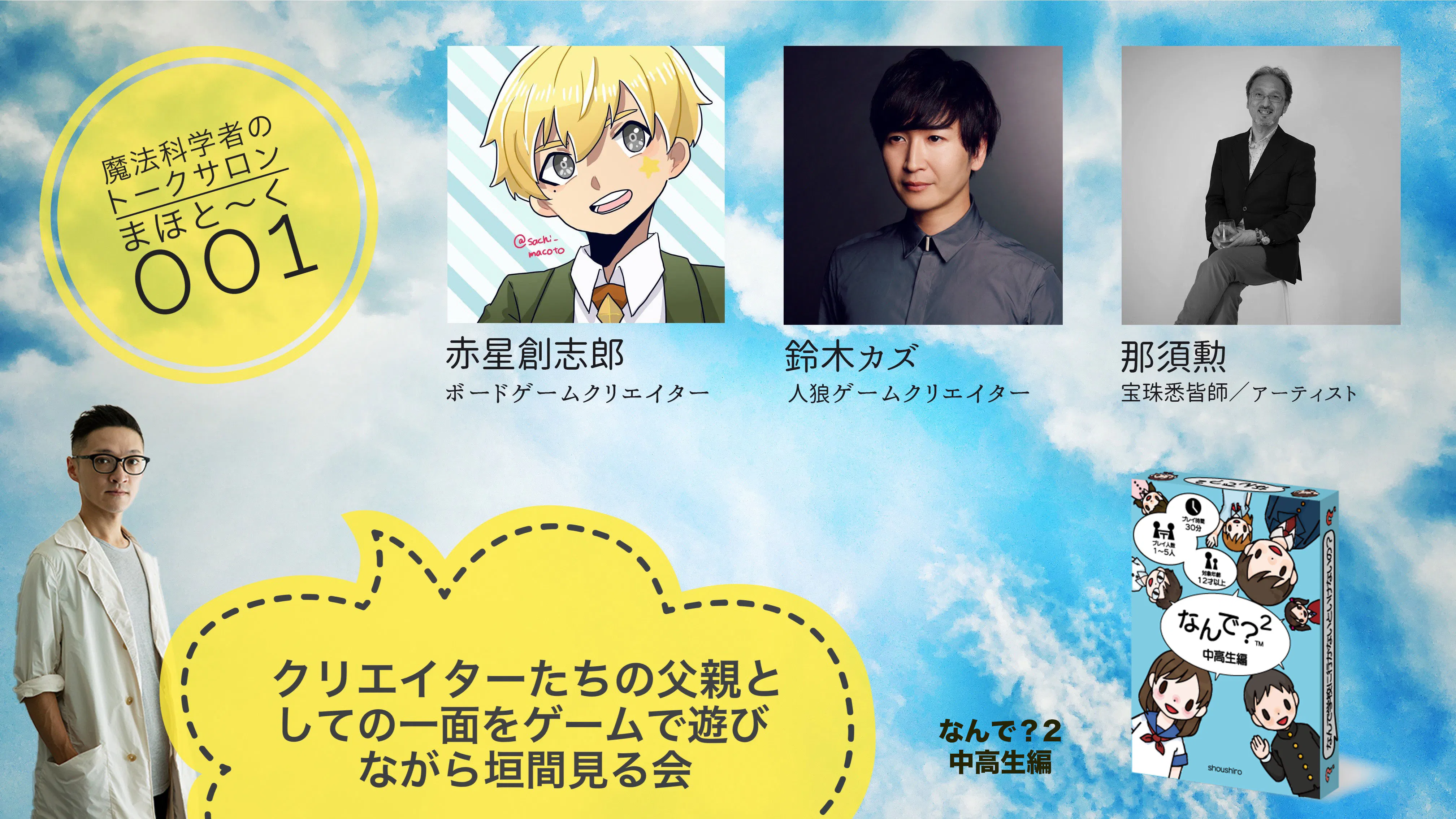 ご一緒いただくのは人狼ゲームクリエイターの鈴木カズさんと、宝珠悉皆師の那須勲さんです!