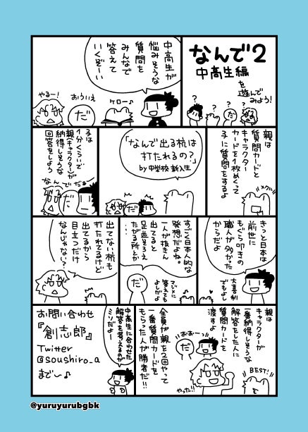 ボードゲーム「なんで?2中高生編」のルール説明の漫画を、きりんなべさんに描いていただきました!!なんと分かりやすい!!