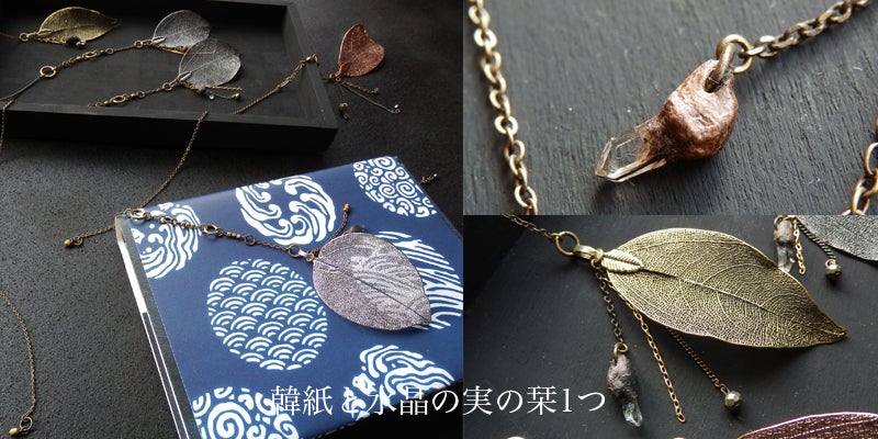 韓紙/葉脈/葉/水晶/厚紙/真鍮/エメラルド
