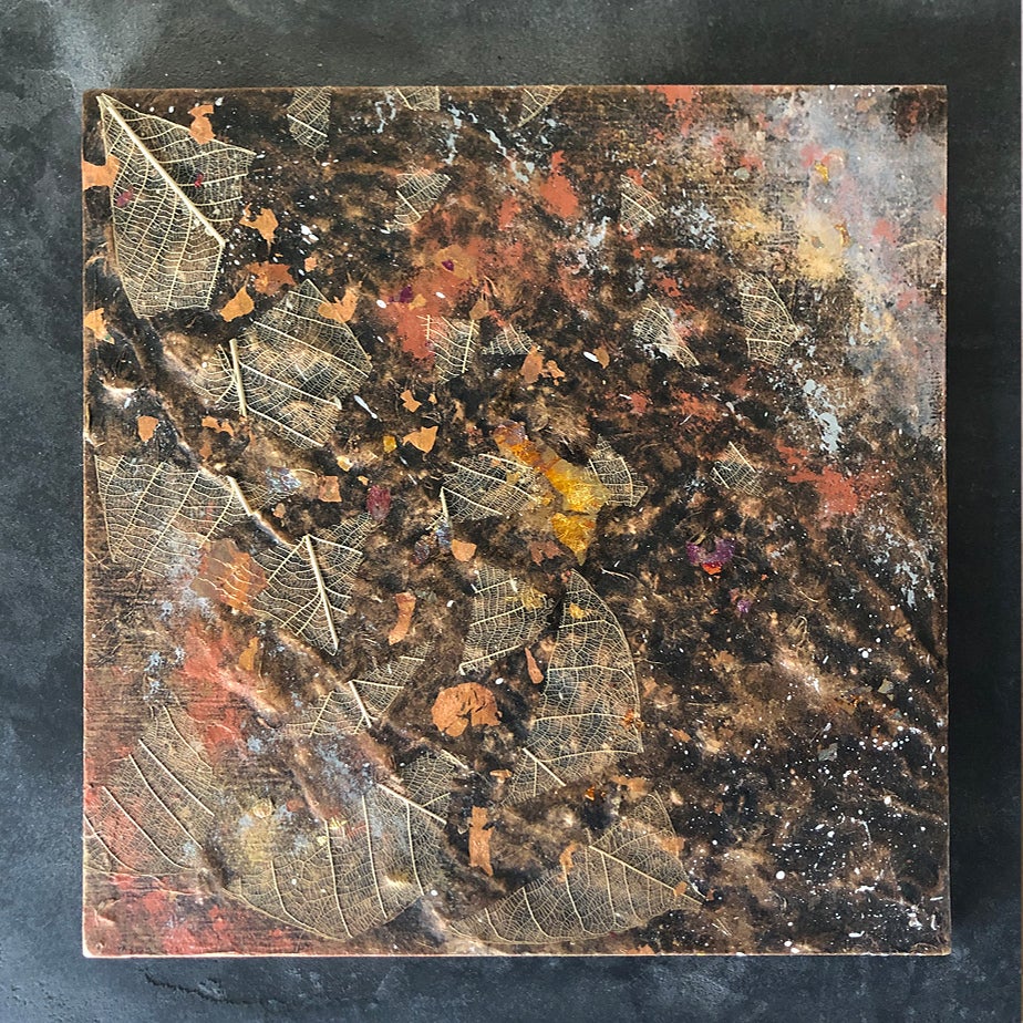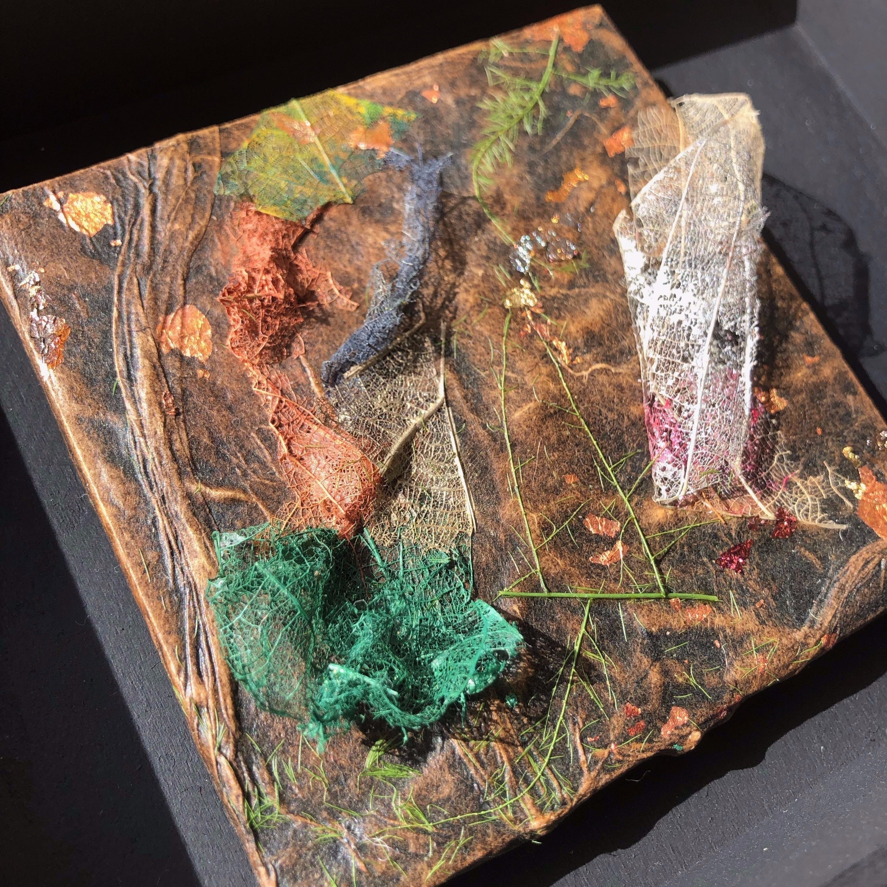 韓紙/葉脈/ 葉 / 箔/木粉粘土/アクリル/針葉樹合板