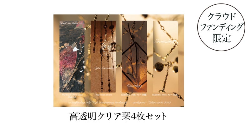 ドバイアートフェア出展作品や、過去展示作品の写真の一部を使用した高透明度のクリアしおりをクラウドファンディング限定で作りたいと思っています。高透明のクリア栞にこれらを印刷したらどうなるのか楽しみです※文字やデザインは変わる場合があります。
