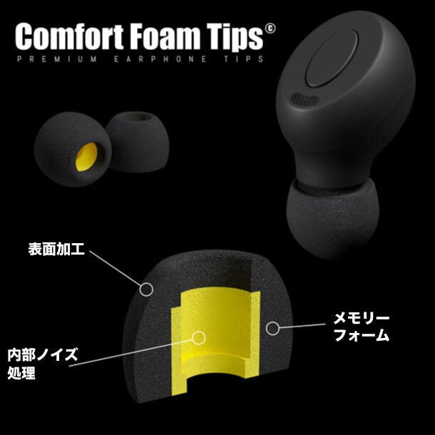 適応発泡素材 (粘弾性ポリマー) を使用した独自のイヤホンチップは、外耳道の形状に合わせてフィット感を高め、快適なサウンド体験を実現します。