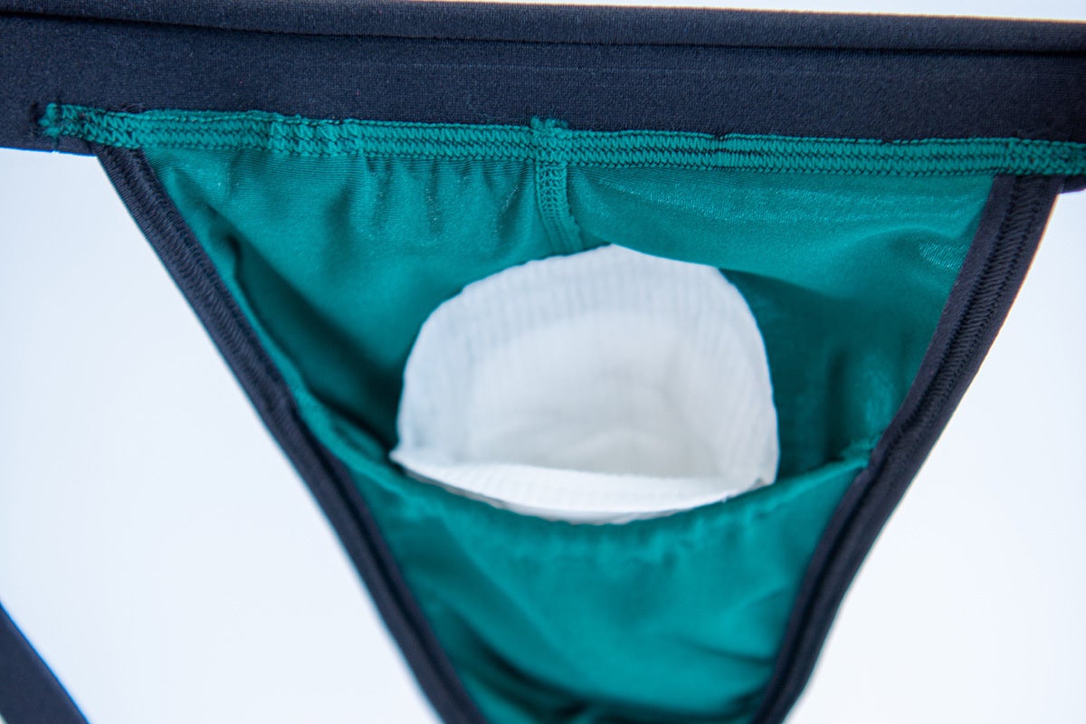「アクアフロント」を優しく包むトランクスおよびジョグストラップは、機能性にすぐれ、満ち満ちた男性の肉体が躍動する姿は人々を魅了します。安心してお使いください。