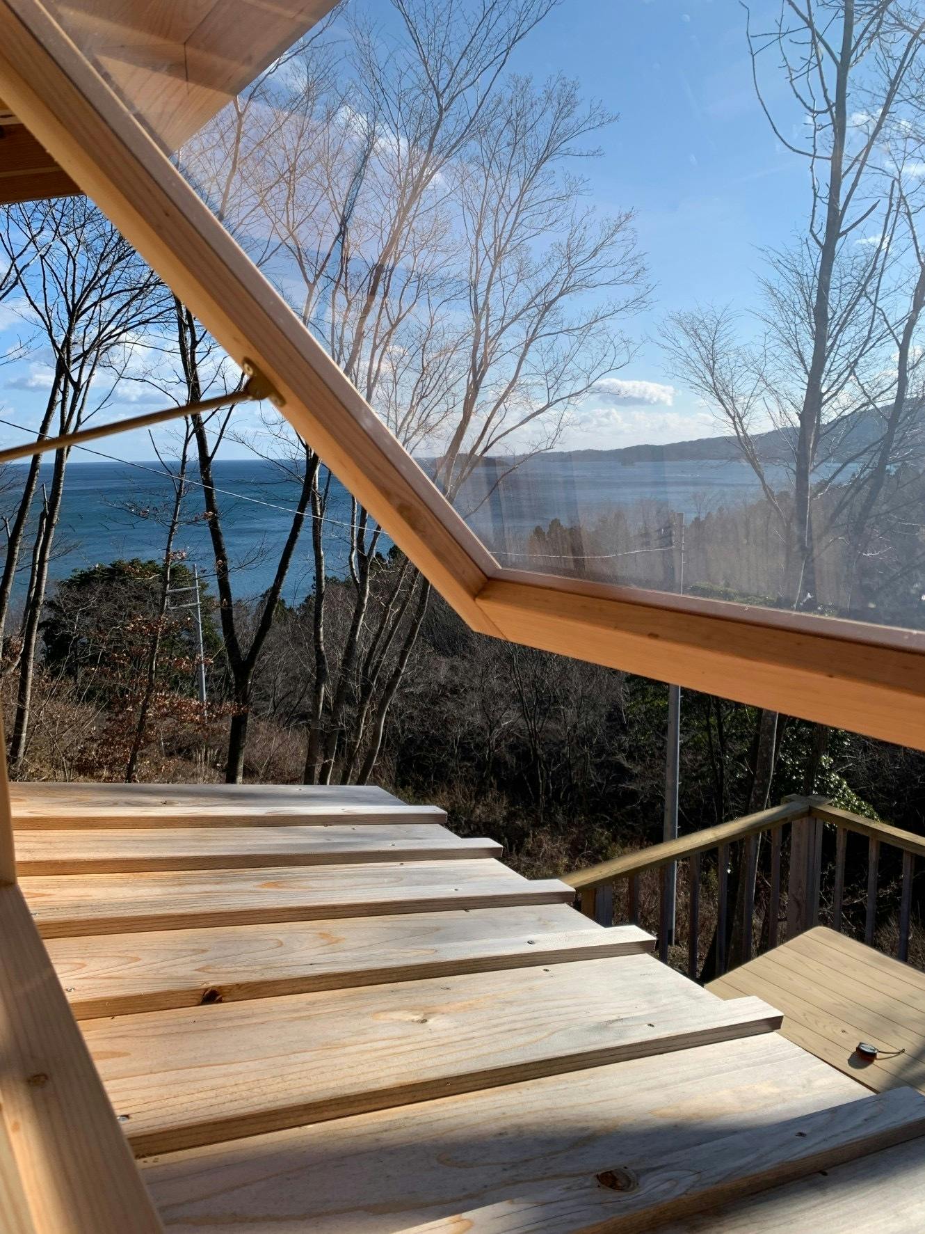 ロフトの窓から志津川湾を眺めたとき、この景色が見られるまでに、山を切り拓いたボランティア、小屋の土台を創ったボランティア、階段を創ったボランティアの皆さんのたくさんの汗と涙があったのだとしみじみ感じました。