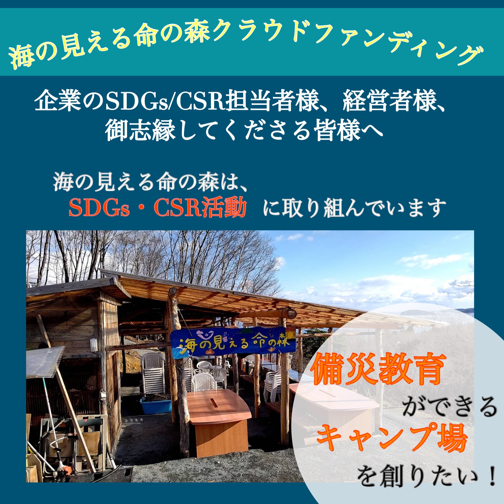 御志縁くださった皆様へ 海の見える命の森クラウドファンディングへ御志縁いただき、有難うございます。皆様の御志縁のおかげで私たちは海の見える命の森を「人と命が繋がる持続可能な森」へと整備することができます。写真は、昨年12月に完成した小屋のロフト部分です。 今回のクラウドファンディングではAll In方式を用い、満額集まらなかったとしてもプロジェクトを遂行することに決めました。 それは、この災害大国日本で海の見える命の森が「備災教育」の拠点になる必要があると強く感じているためです。 災害時、ライフラインが止まってしまったら、私たちは自然の力を借りなければなりません。しかし、様々なことが便利になったこの社会で私たちは自然と共生する力をどんどん失ってきてはいないでしょうか? 南海トラフ巨大地震の予想発災確率は90%にまで引き上げられました。東日本大震災の被災地の一つ、宮城県南三陸町のみなさんが、来る南海トラフ巨大地震で一人でも多くの命を守るための「備災教育」の場として海の見える命の森を創っています。私は被災経験のない大学生ですが、被災された方々が私たちの命を守るためにこの森を創っていることに感銘を受け、私も一緒にこの備災教育の森を創っていきたいと強く感じています。 また、南海トラフ巨大地震では犠牲者数が23万人と想定されています。しかし、一人一人が早期避難をした場合、17万人が助かるとされています。そうした「備災意識」を持つことでこんなにも多くの命が助かるのです。だからこそどんなに小さなステップであってもこの森を整備することで、たくさんの人に森を訪れてもらい、命を守るための「備災」について学んでほしいのです。 御志縁くださった皆様に厚顔無恥でありますが重ねてお願いがございます。この海の見える命の森のクラウドファンディングを、皆様の周りの企業のSDGs/CSRご担当者様、経営者様にお伝えいただけないでしょうか。このクラウドファンディングを行なっている主体が大学生で、発信する相手も同世代が多く、経済的に志縁できる金額にも限界があり悔しい思いでなりません。でも、私たちはなんとしてもこの森を命を繋ぐ森へと整備していきたいです。皆様の御協力をどうかよろしくお願いいたします。現在の総志縁額 84,000円終了まで残り  33日目標まで残り  916,000円Smile and Fighting!岡崎菜々子