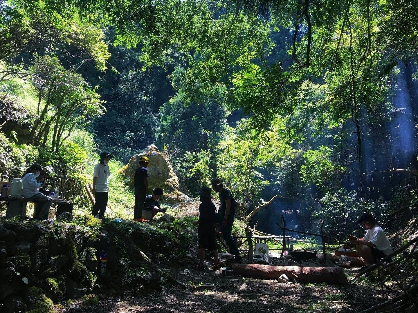 みっけのメインフィールドは神山の里山です。鮎が泳ぐ川が流れ、果実の木が生える「食べられる森」です。土壌や気候、自然環境や資源を活かした、多種多様な植物が共生する環境を整えます。人と自然が共同創造する森づくりの活動を通して、人間が地球の恵みによって生かされていること、また心が豊かになる暮らしを自分たちで創り出せることを体験的に学ぶことができます。