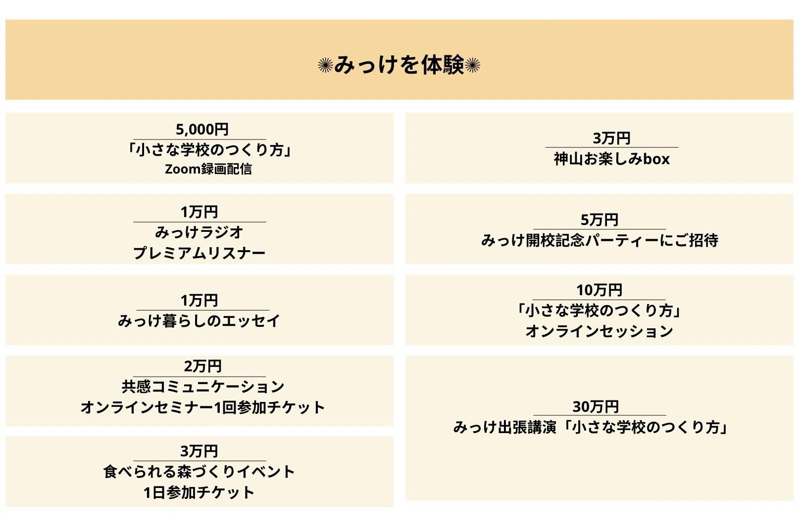 「子どもの夢のサポーターになる」コース、「シンプルに応援」コース、「みっけを体験」コース