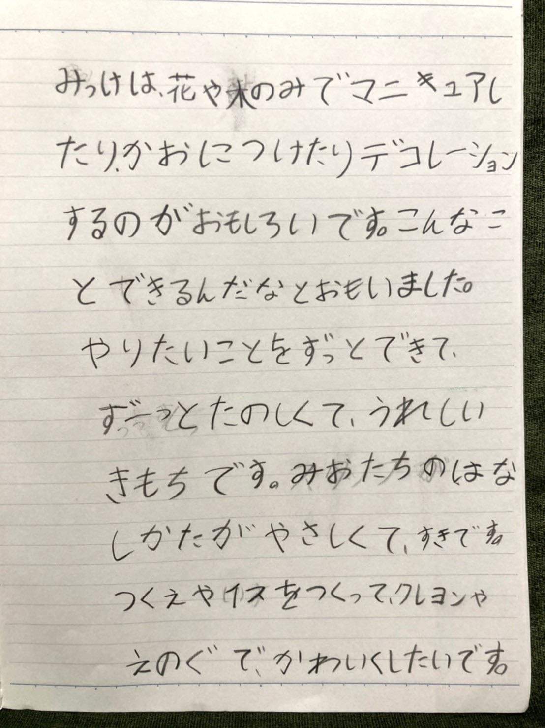 画像の手紙は、みっけを体験した子どもからのメッセージです。