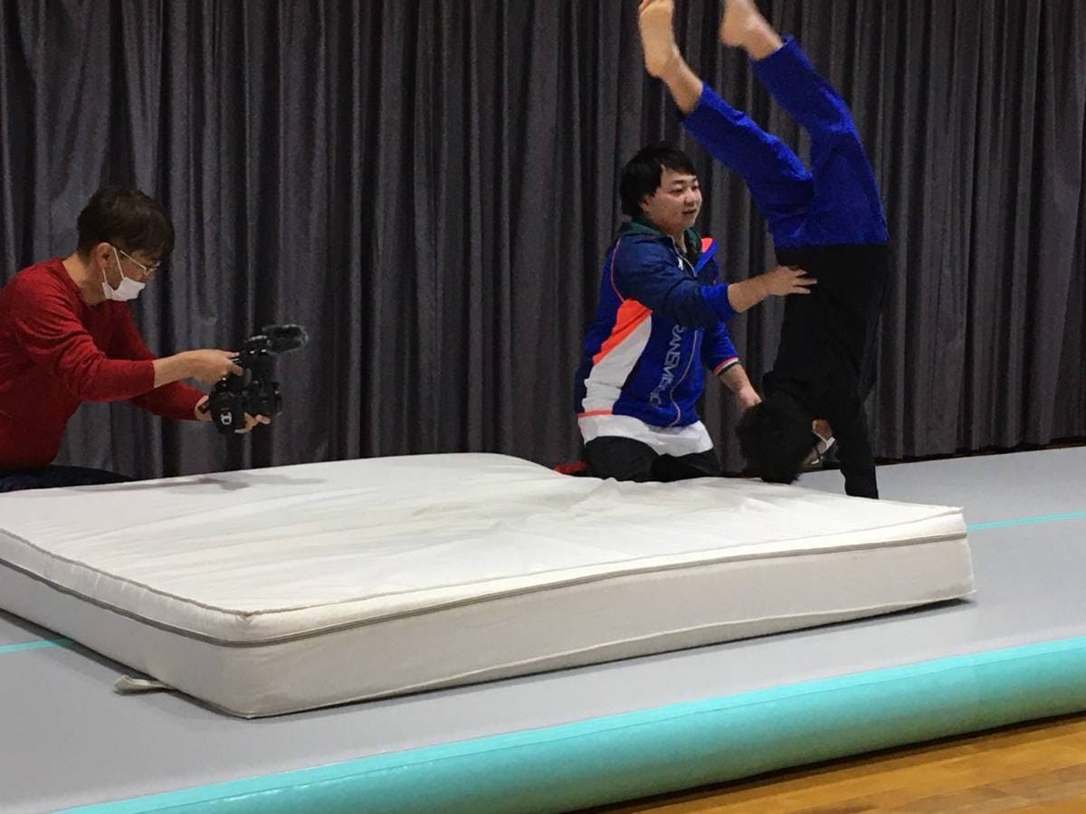 スタジオじゆう専属のバック転教室講師によるエアートランポリンしながらの