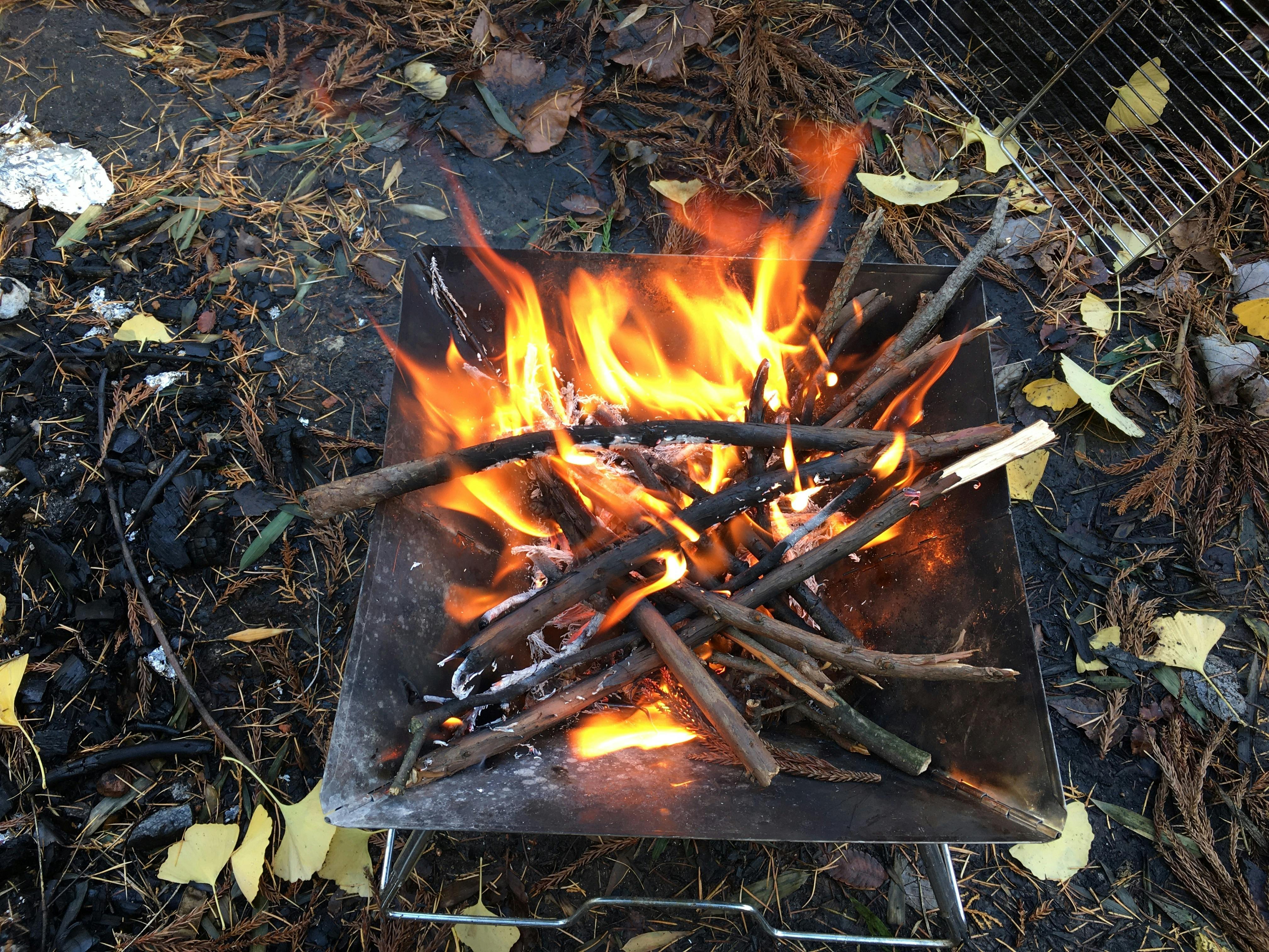ファイヤースターターという火の粉を飛ばす道具で火起こし体験ができます。