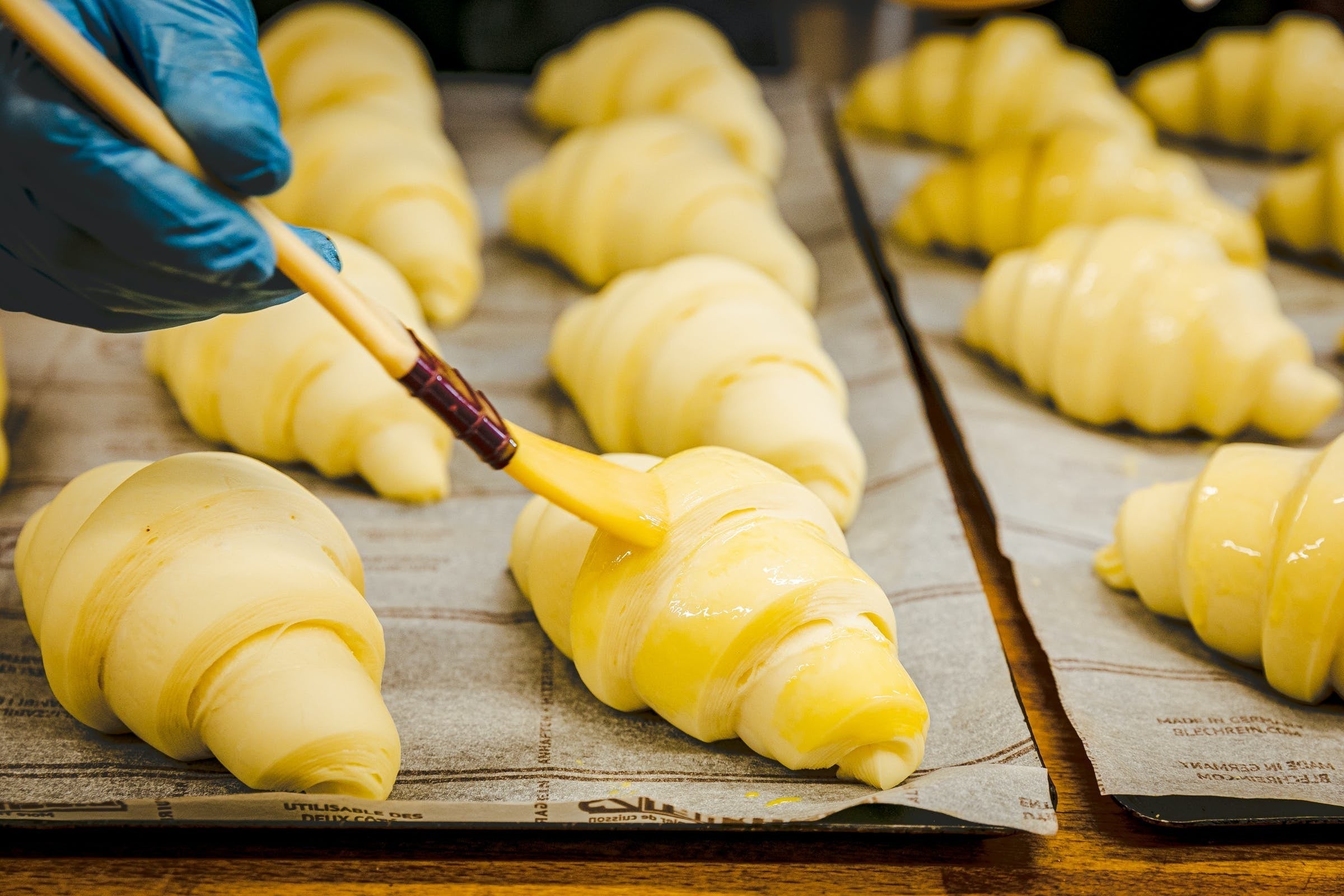 フランスでは通常、外側のカリカリ感を出すために蜜蝋を塗りますが、そうすると固くなりすぎることがあり、あまり日本人には馴染まない食感になってしまいます。