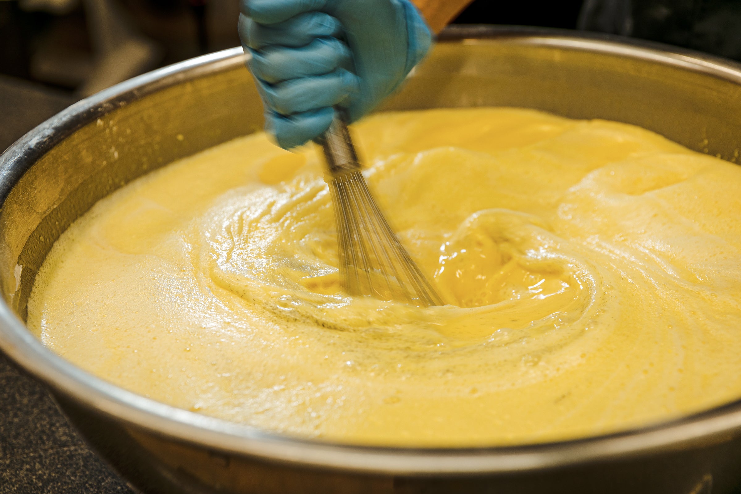 さらに、卵黄に加えて全卵を使うことで、口に含んだ時、時間差で溶けていく繊細な食感を演出しています。