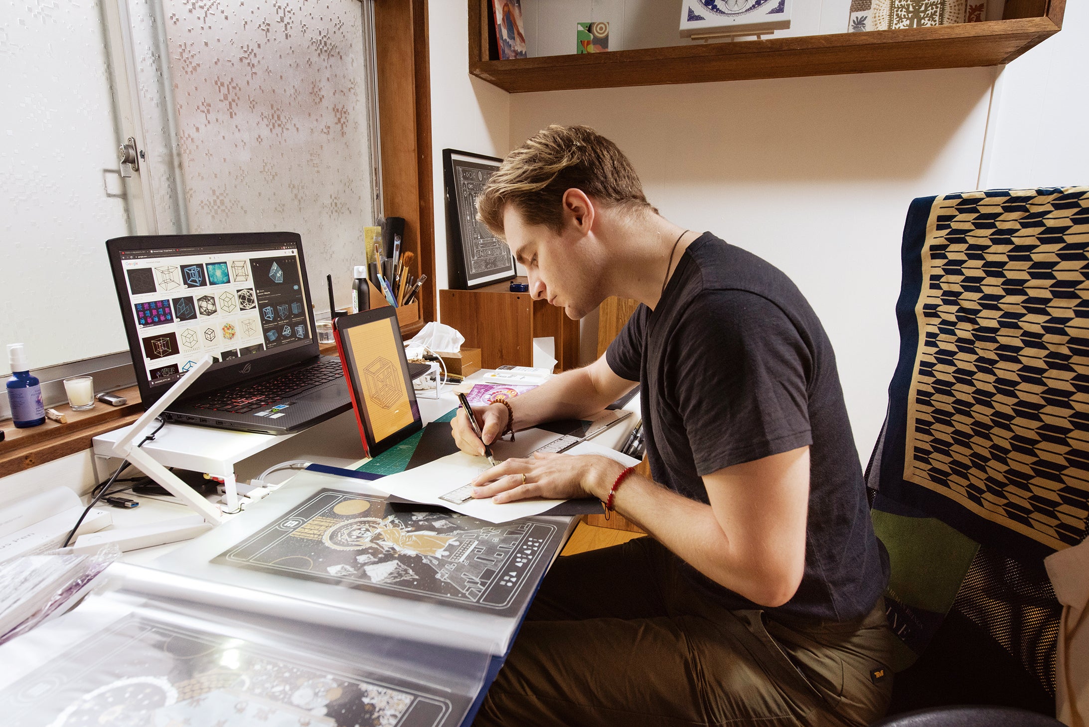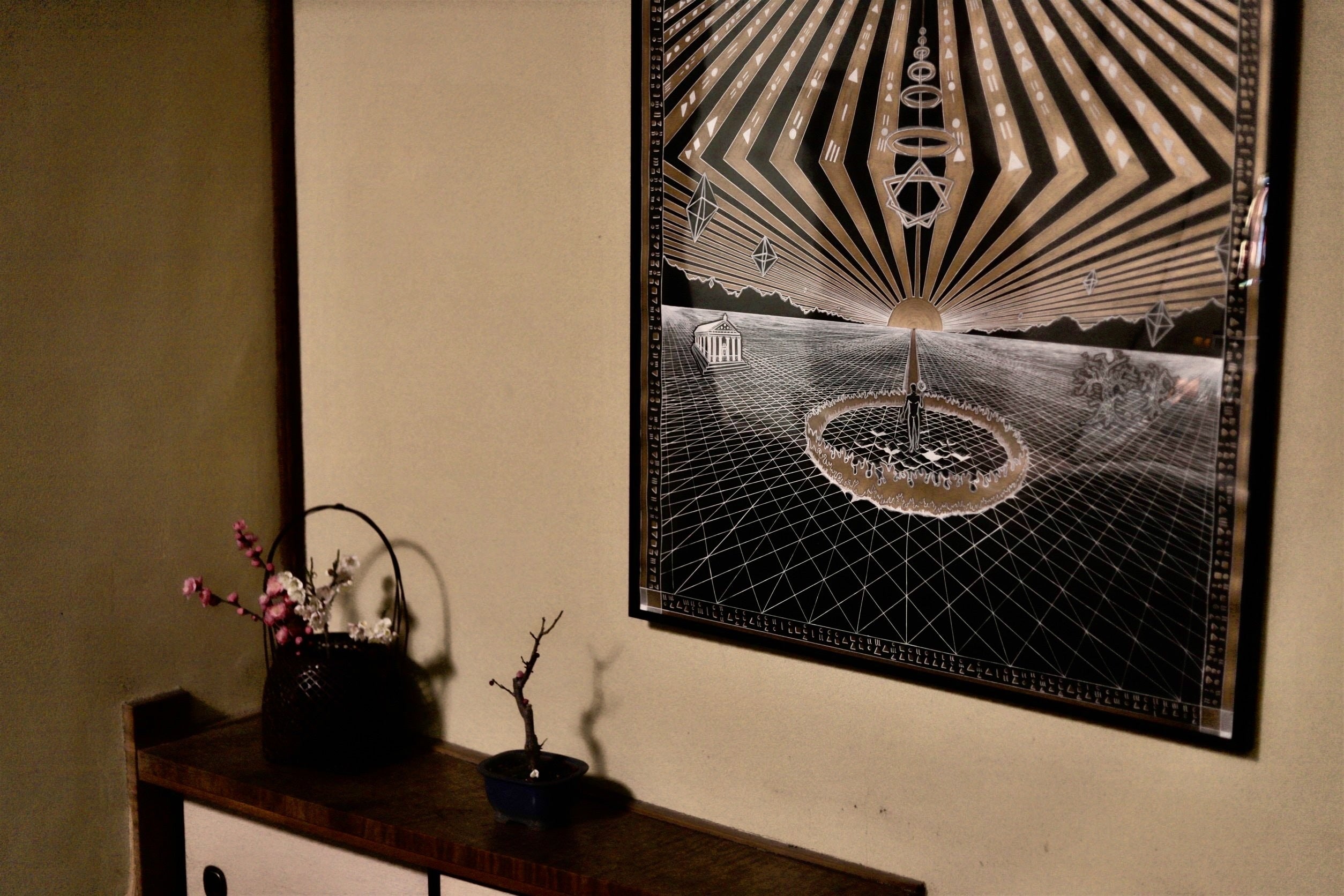 寺社仏閣の多いこの街からインスピレーションを得て、仏画も描くようになりました