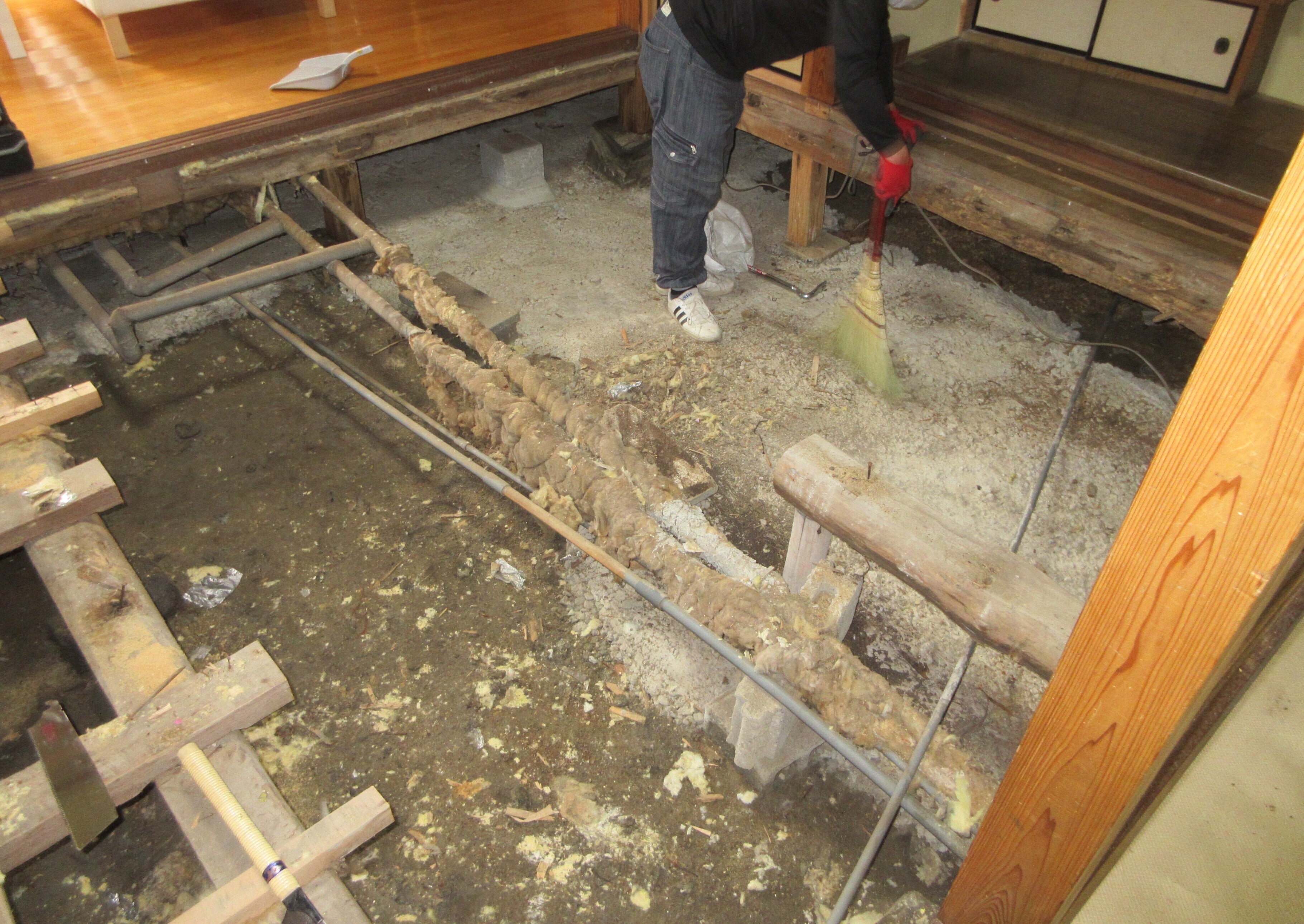 リノベーションは床下工事から開始