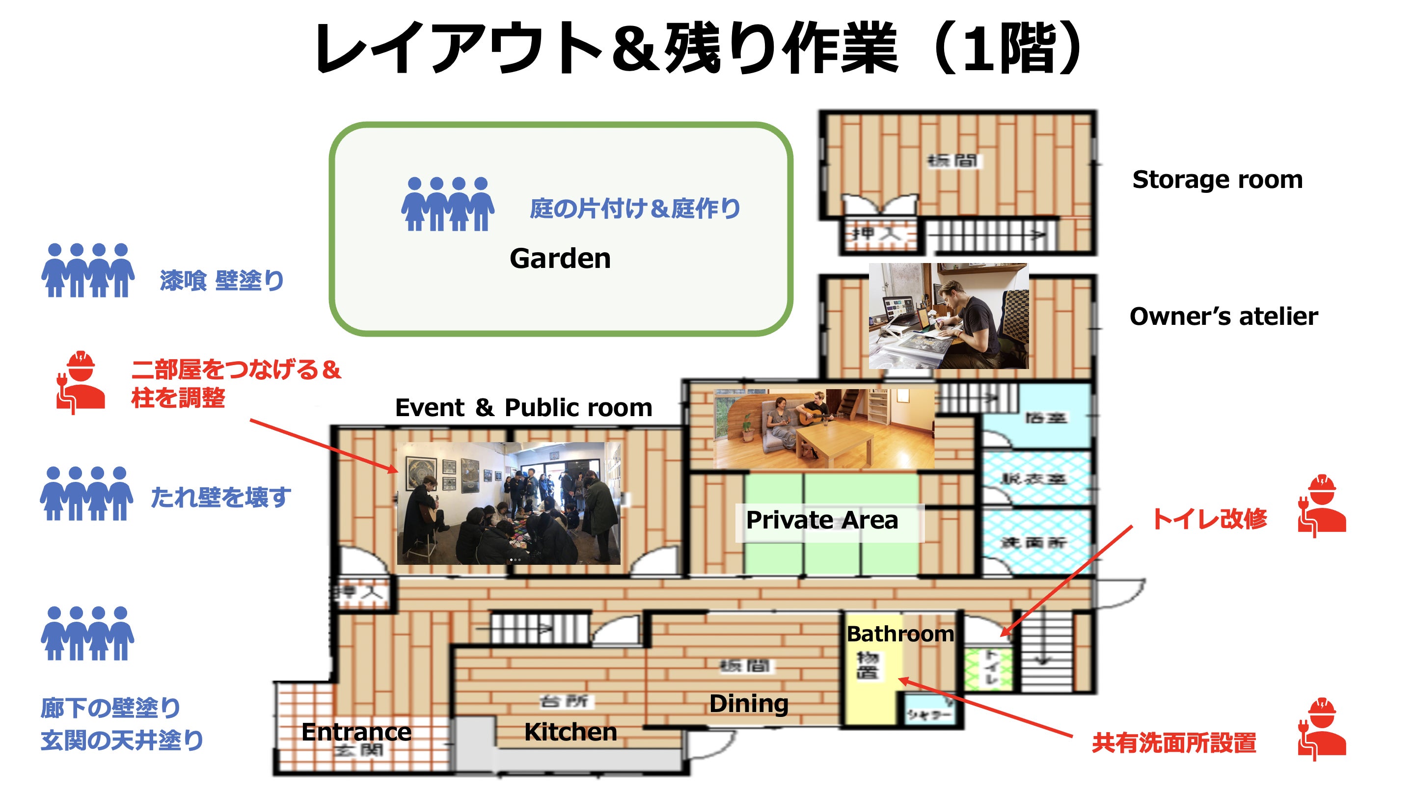 ・内装工事(イベントスペースや共有部分、ゲストルームの改修)