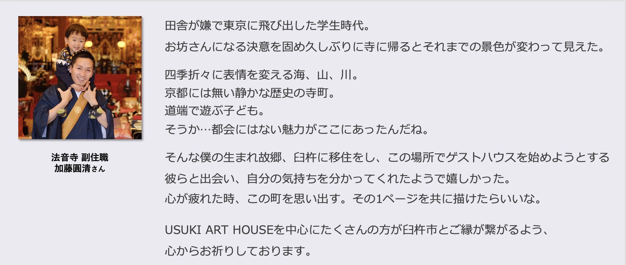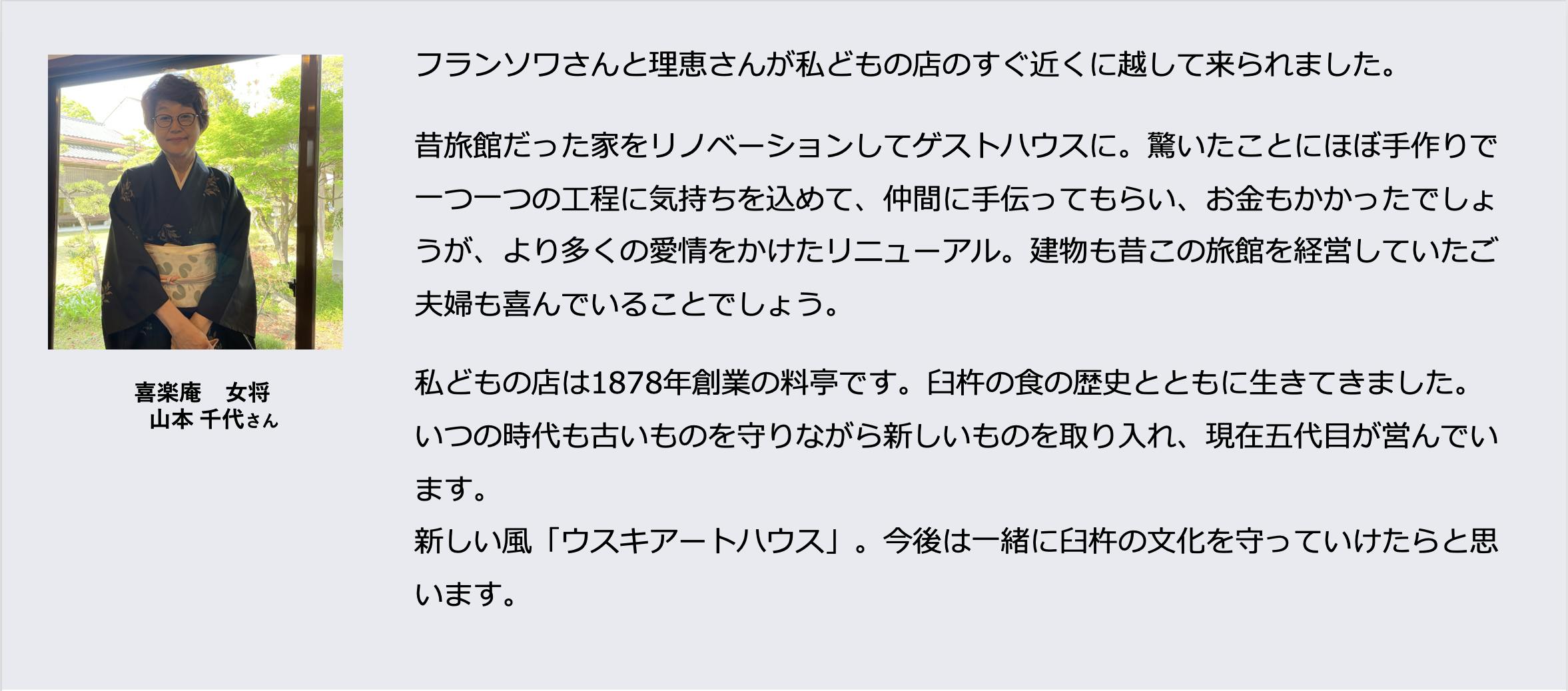 USUKI ART HOUSE オーナーの河野理恵&ヘイロード フランソワと申します。