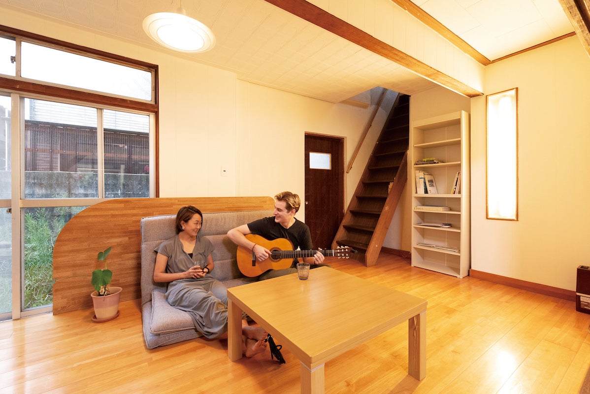 現在リノベーション中のゲストハウスのリビングで撮影