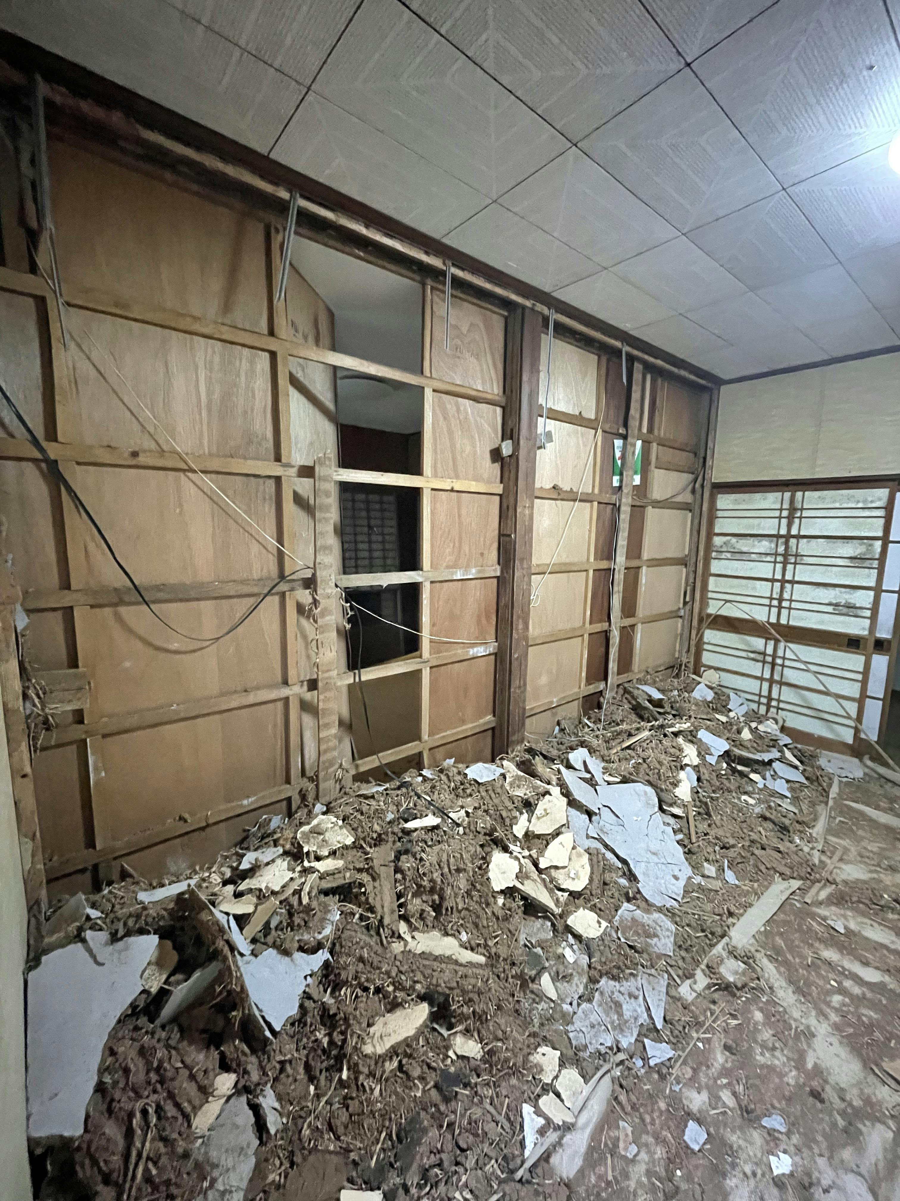 みんなで壁を壊して、二つの部屋を一つに!