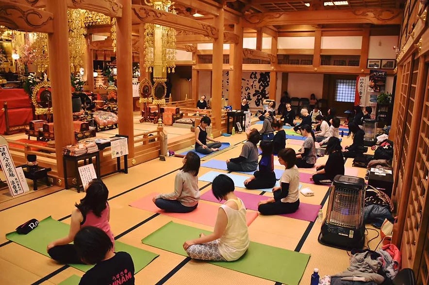 祈りと癒しの法音寺の本堂で心と体を開放する寺ヨガ!