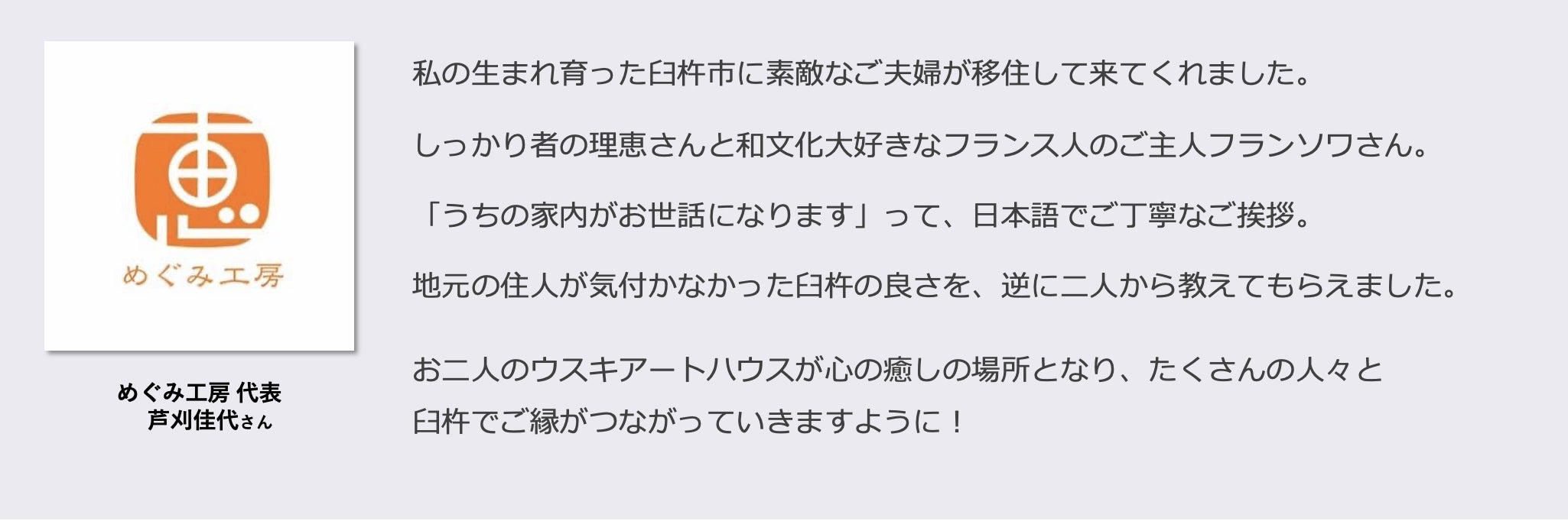 USUKI ART HOUSE オーナーの河野理恵&ヘイロード フランソワと申します。