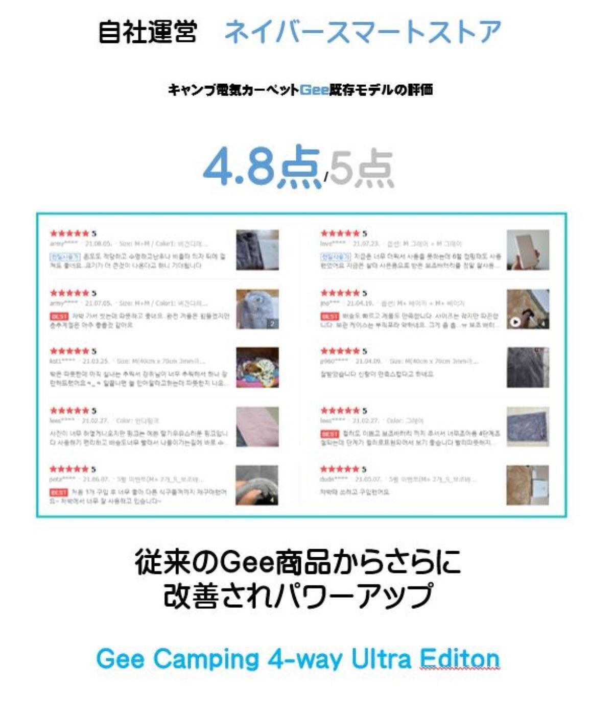 「Gee」は大韓民国の誇りに思う国産の高級キャンプ電装版ブランドとなります。Geeは、国内外の他の同種製品が従うことができない革新的な品質優位性を常に達成します。