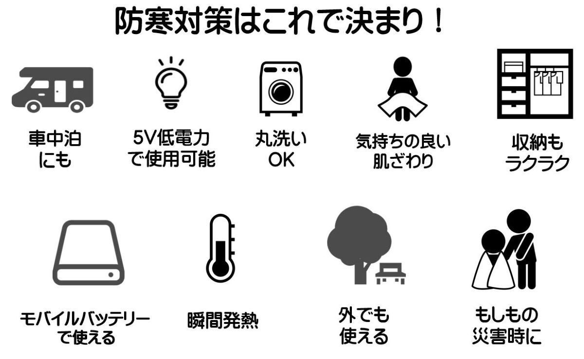 冬のキャンプでテント内での宿泊、車中泊、電気カーペットがあればいいのにと思った事はないですか?しかし家庭用100Vの電気カーペットを持ってくるのは結構大変です。