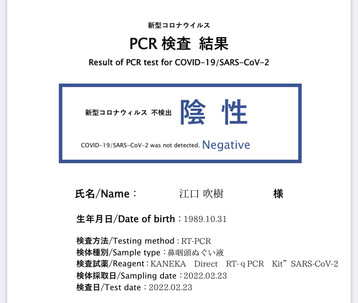 そして、PCRテストも受けてきました!