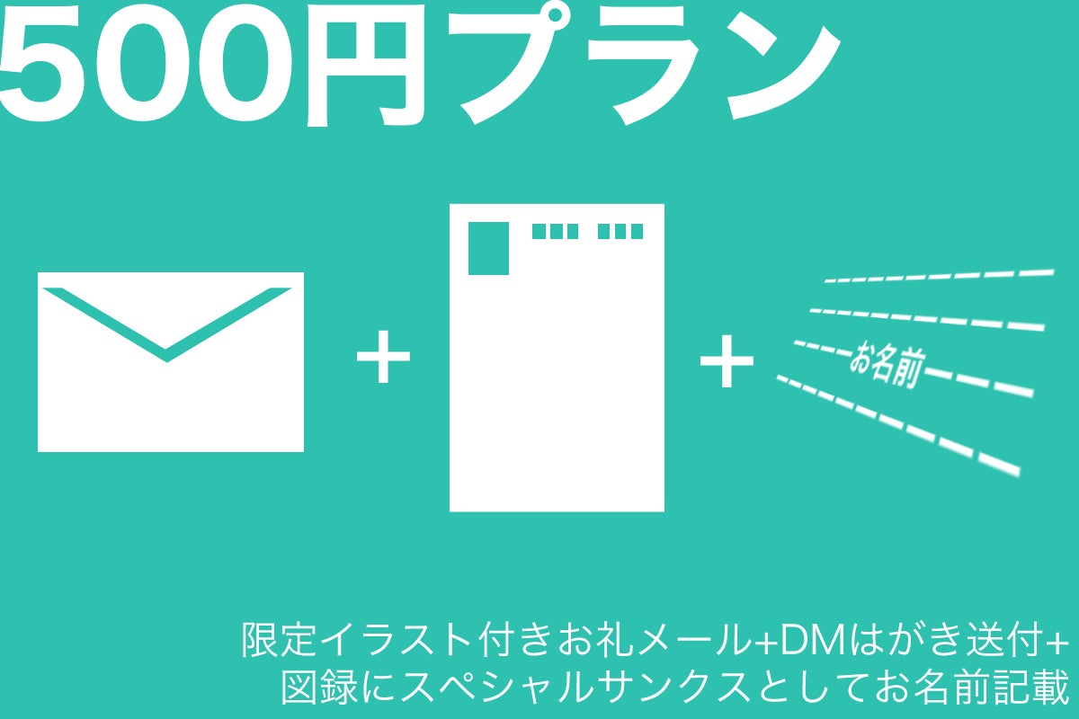 限定イラスト付きお礼メール+DMはがき送付+図録にスペシャルサンクスとしてお名前記載