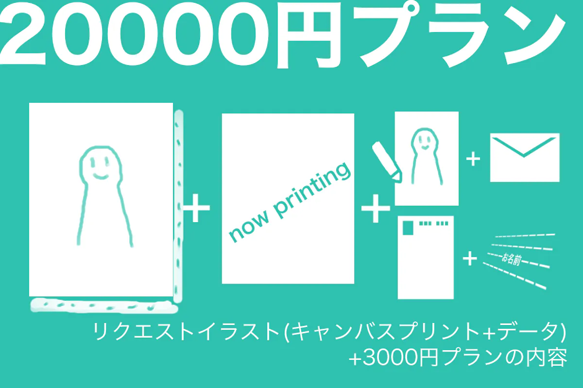 リクエストイラスト(キャンバスプリント+データ)+3000円プランの内容