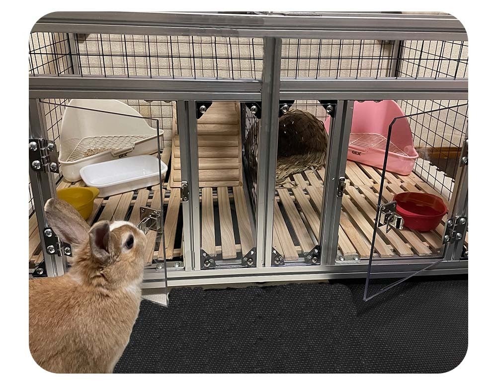 どうせなら子うさぎ兄弟が寂しくないようにケージをくっつけてあげようと二羽用ケージを作成しました。