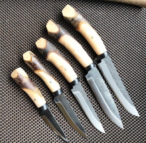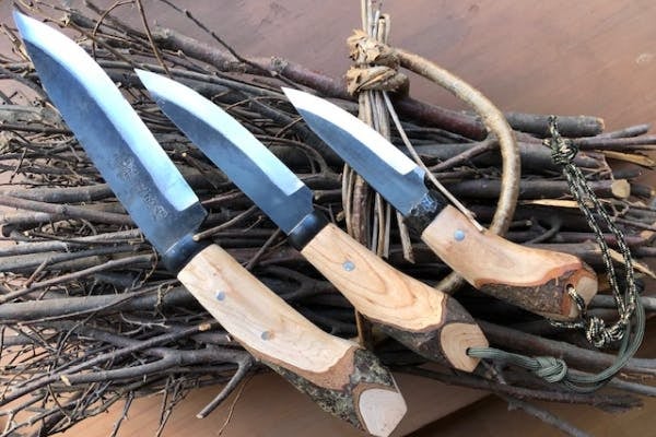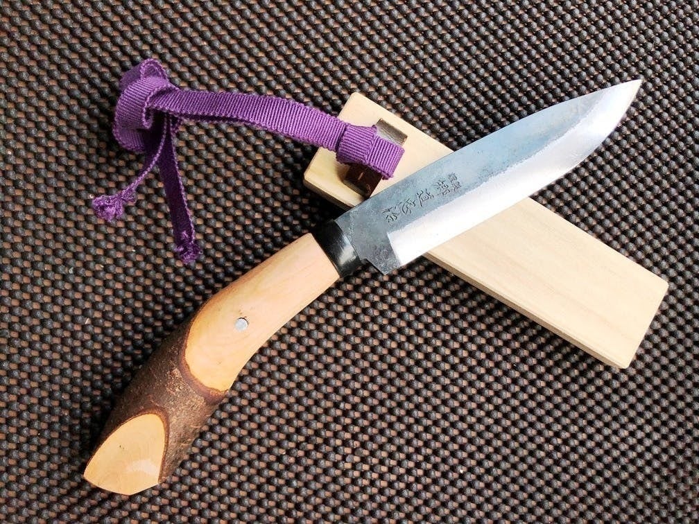 しかし、軽くて丈夫なうえ、反動を伝えにくく体に優しい柄材としての性能のすばらしさに加え、色んな表情を見せる表皮の面白さと、伝承される太い柄尻の有効性など、後世に伝えて行くべき付加価値を感じ、最も汎用的であり頑丈であらゆる場面で持ち主の要求にこたえてくれるような剣鉈の開発を思い立ちました。